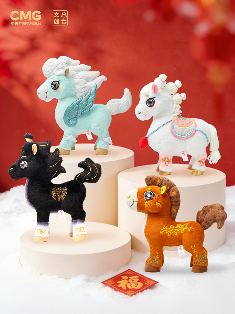 “骐骐”“骥骥”“驰驰”“骋骋”是2026年春节联欢晚会的生肖吉祥物,名字来源于“骐骥驰骋 势不可挡”的主题。“骐骥”是古人对骏马、千里马的雅称,凝聚着中华民族开拓进取驰而不息的精神品格。吉祥物的设计灵感来源于中国不同时期马的经典形象,并将流云纹、山云纹等千年纹样“穿”上身,充盈着生生不息的历史美感和万象更新的时代气象,饱含马到成功、前程似锦的美好寓意。