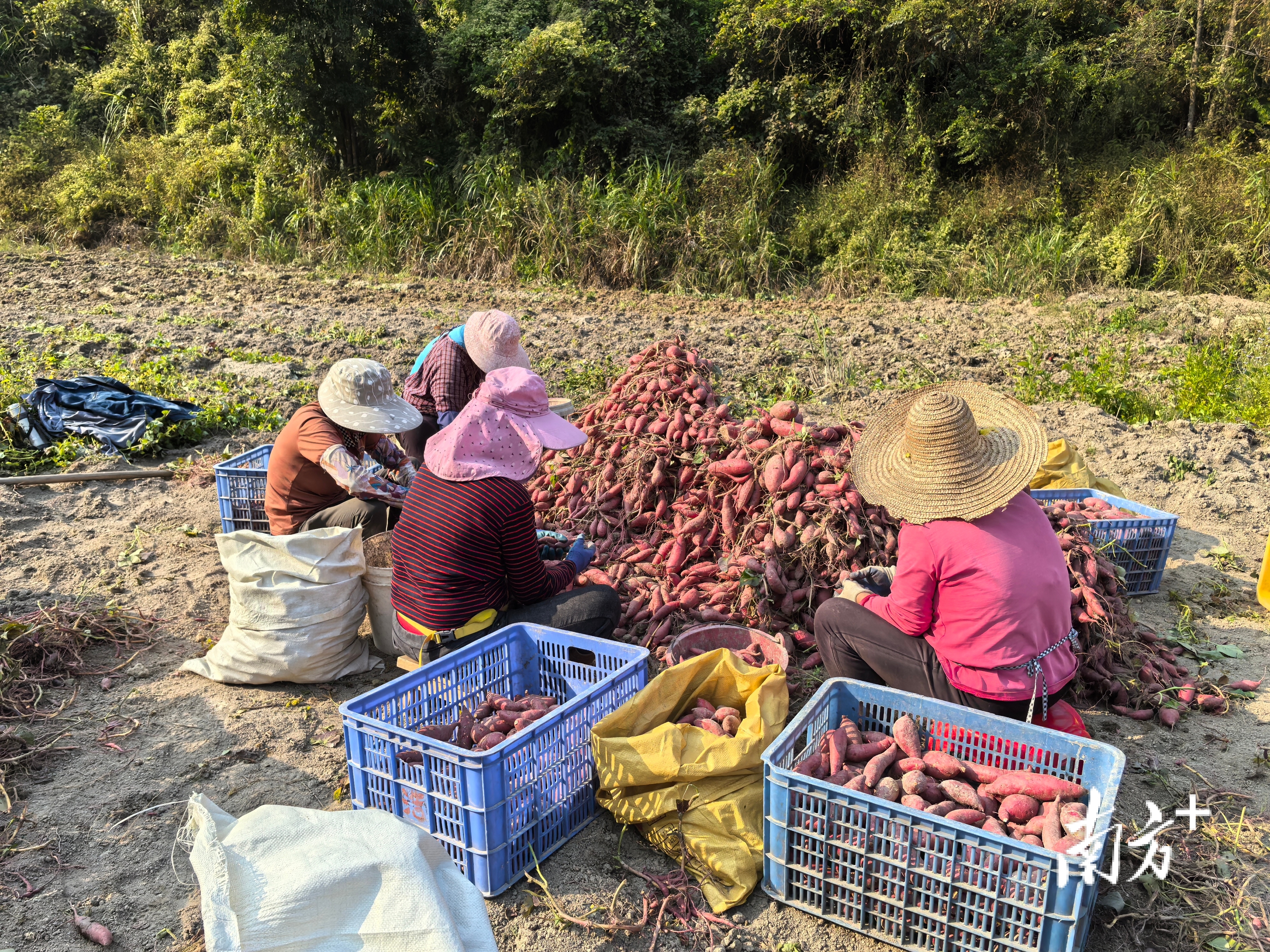 在这一模式下,村党组织统筹协调土地流转与政策对接,合作社专注技术指导、品牌打造与市场开拓,农户则按标准开展规范化种植。三方协同发力,推动红薯产业迈向规模化、标准化、品牌化。“我们村的沙质土壤种出的红薯香、糯、甜,富含多种有机元素。”三联村党总支书记介绍。该村种植红薯已有十年历史,将其作为“一村一品”重点打造,“三联红薯”曾入选“粤字号”农产品名录。其中,主打品种“中国红”以其“香甜软糯、无筋无渣”的优质口感,深受市场欢迎,成为带动村集体增收和村民致富的“金钥匙”。