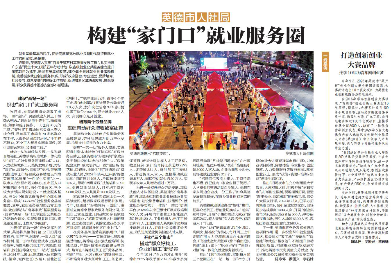 近年来,英德深入实施“百县千镇万村高质量发展工程”,扎实推进广东省“民生十大工程”五年行动计划,以省级就业公共服务能力提升示范项目为抓手,通过系统集成改革,建立健全县域就业创业激励机制,完善城乡就业创业服务体系,形成“政府搭台、专业运营、品牌培育、社会参与、群众受益”的良好工作格局,促进城乡区域协调发展、融合发展,群众获得感幸福感安全感不断增强。