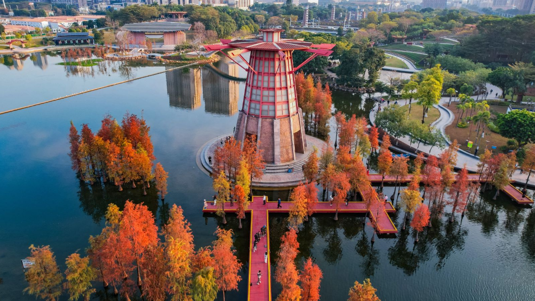 近日,深圳仙湖植物园的落羽杉进入最佳观赏期,迎来了一年中的高光时刻。