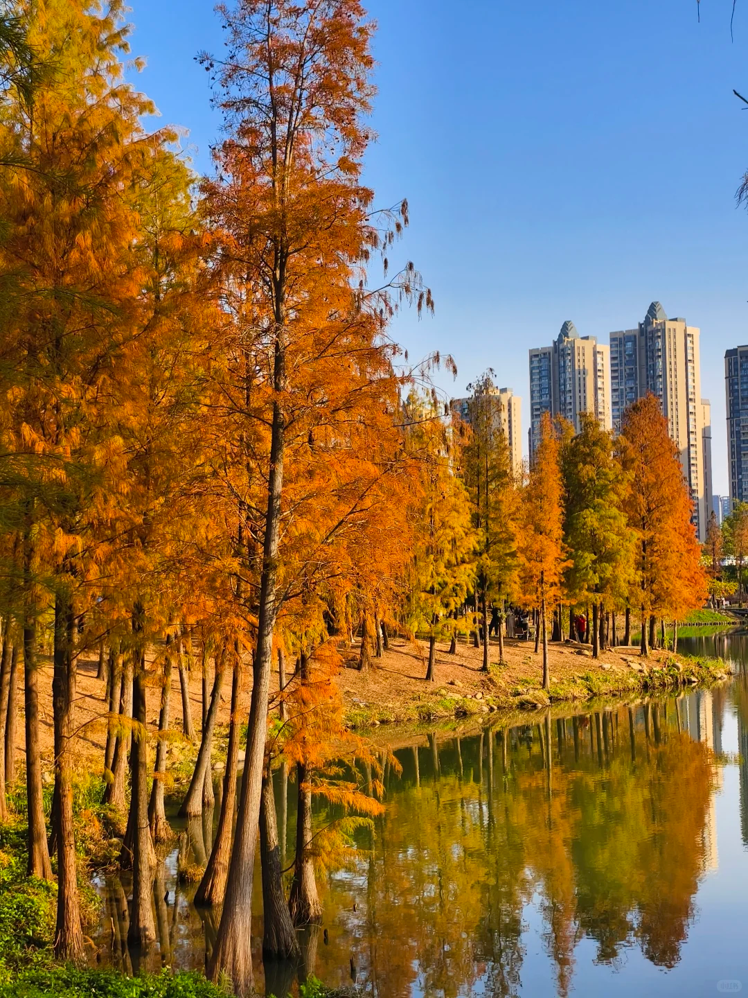 黄杨河湿地公园的落羽杉林现已进入最佳观赏期。