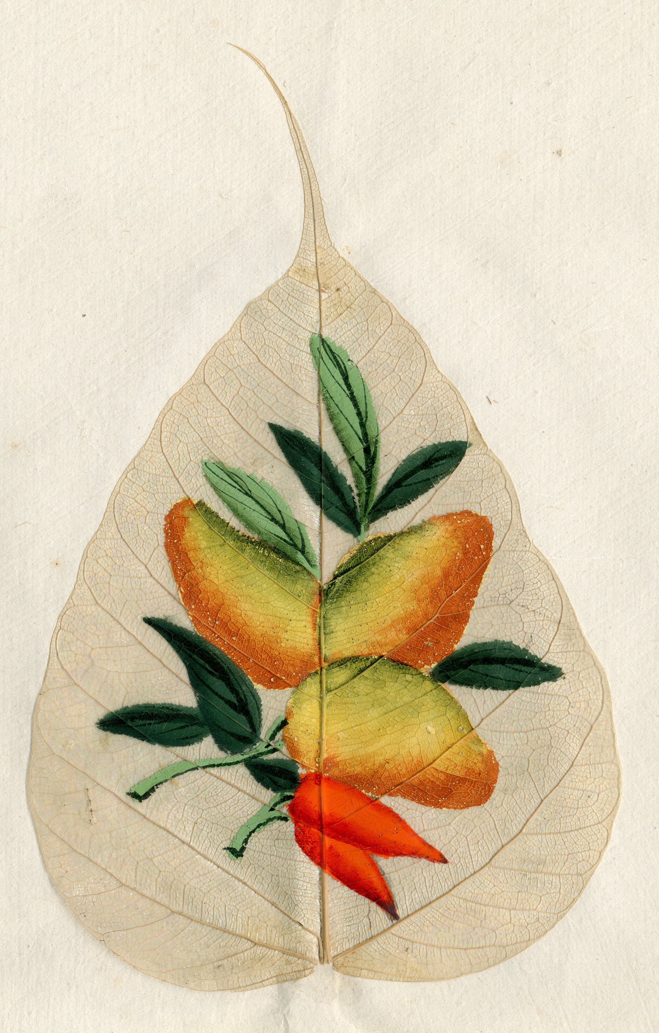 菩提叶水彩画中的芒果。