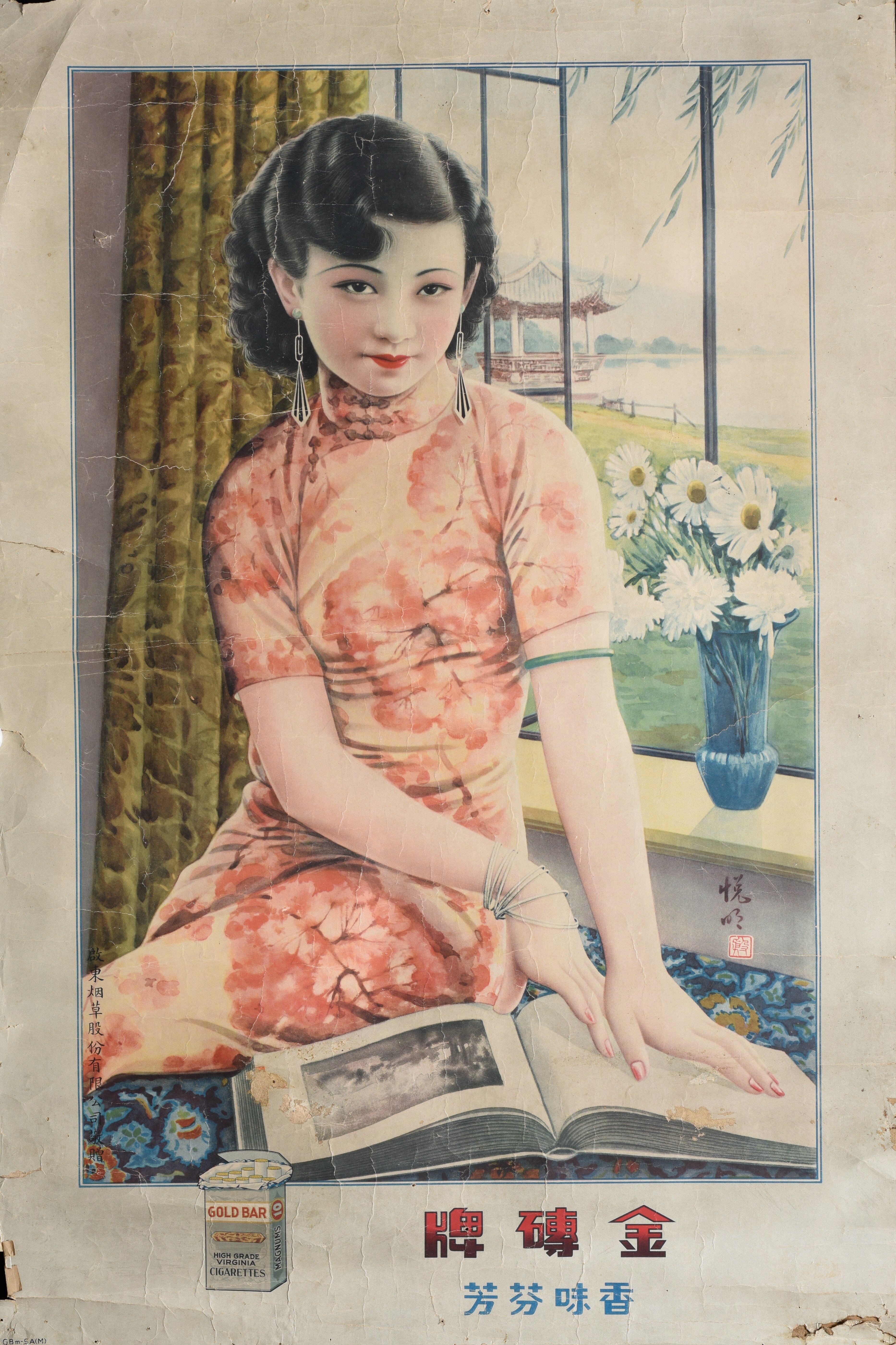 民国“金砖牌”香烟广告画。