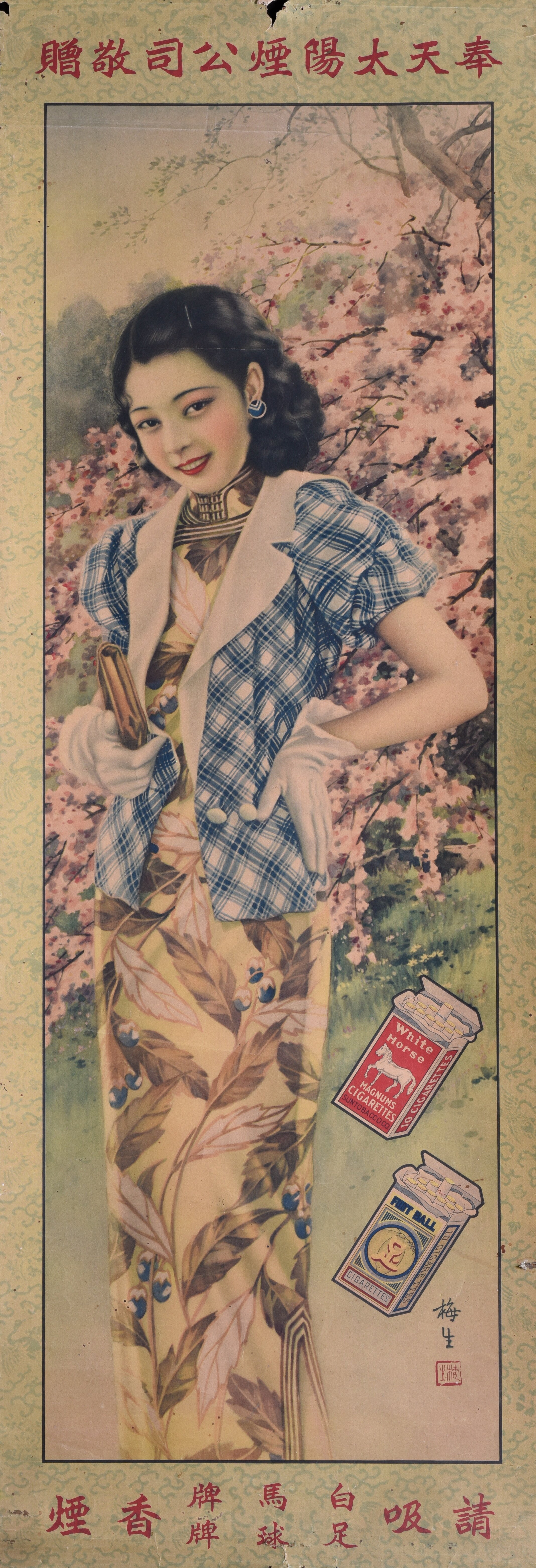 民国“白马牌、足球牌”香烟广告画。