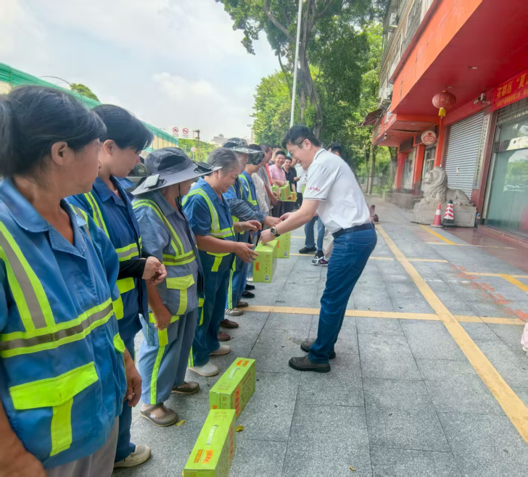 近日,花都区新华街道总工会、新华街迎宾路党群服务中心联合广东省矿产资源勘查院在矿勘院工会户外劳动者爱心驿站中联合开展“夏日送清凉”暖心关爱新就业群体公益活动,为炎热天气中坚守岗位的外卖骑手、快递小哥、环卫工人等户外劳动者送去了一份消暑的清凉与诚挚的关怀。