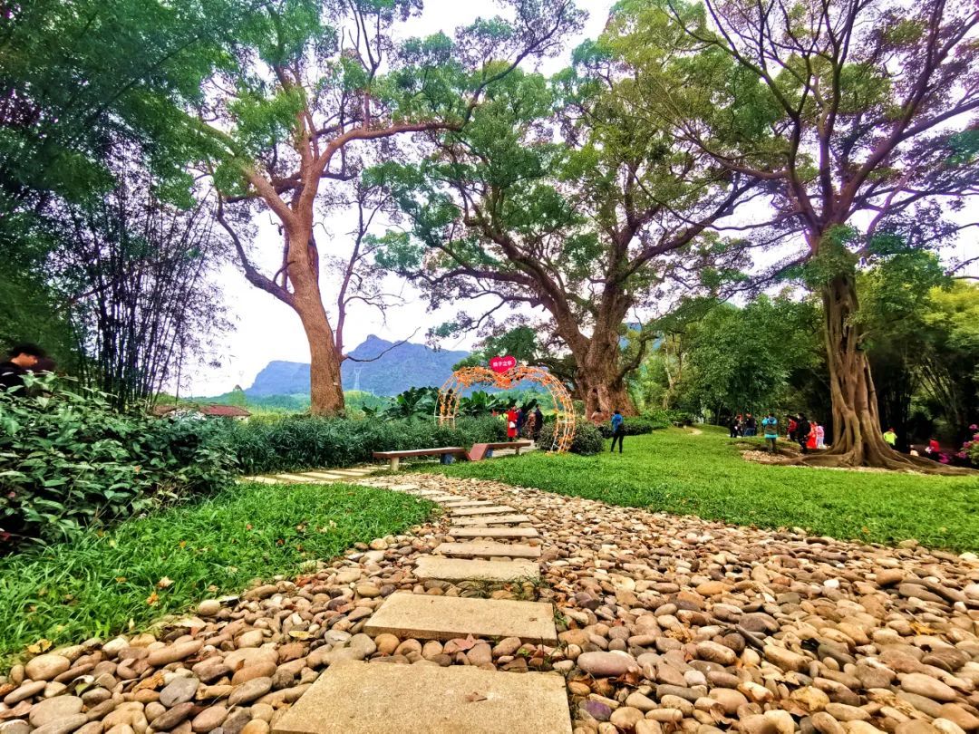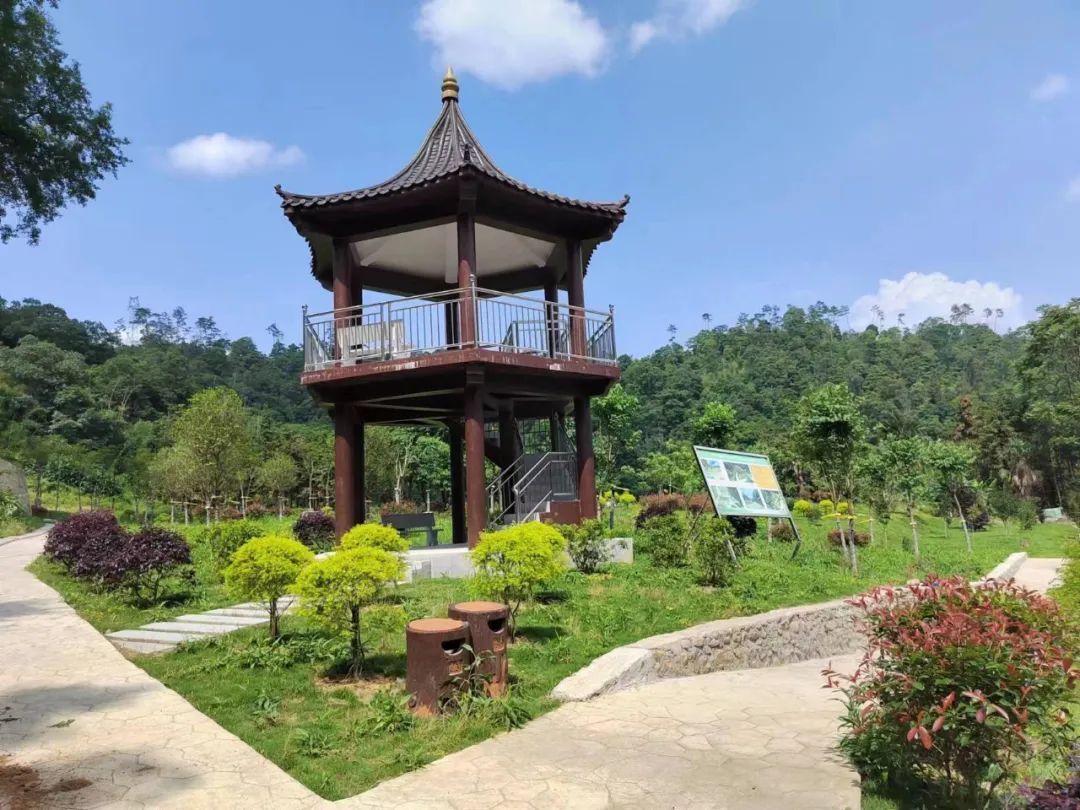 走进公园,小径蜿蜒伸向林间。古红锥高大挺拔,树皮斑驳。空气里弥漫着树木和泥土的气息,深吸一口,整个人都清爽起来。园内有景观亭和小桥,走累了可坐下歇息。