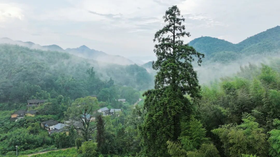 山脚下小村刷了统一墙漆,新修登山步梯直通树下。站在树下,能听见风吹过林海的声音,由远及近,又渐渐远去。