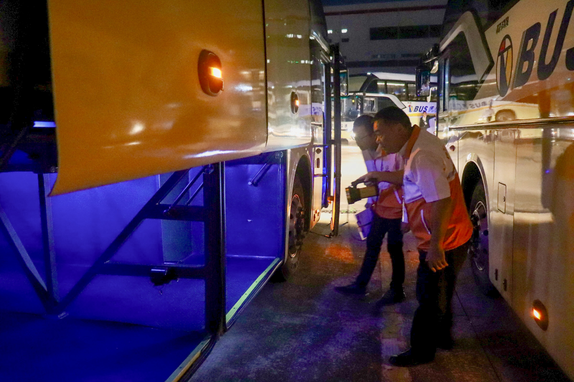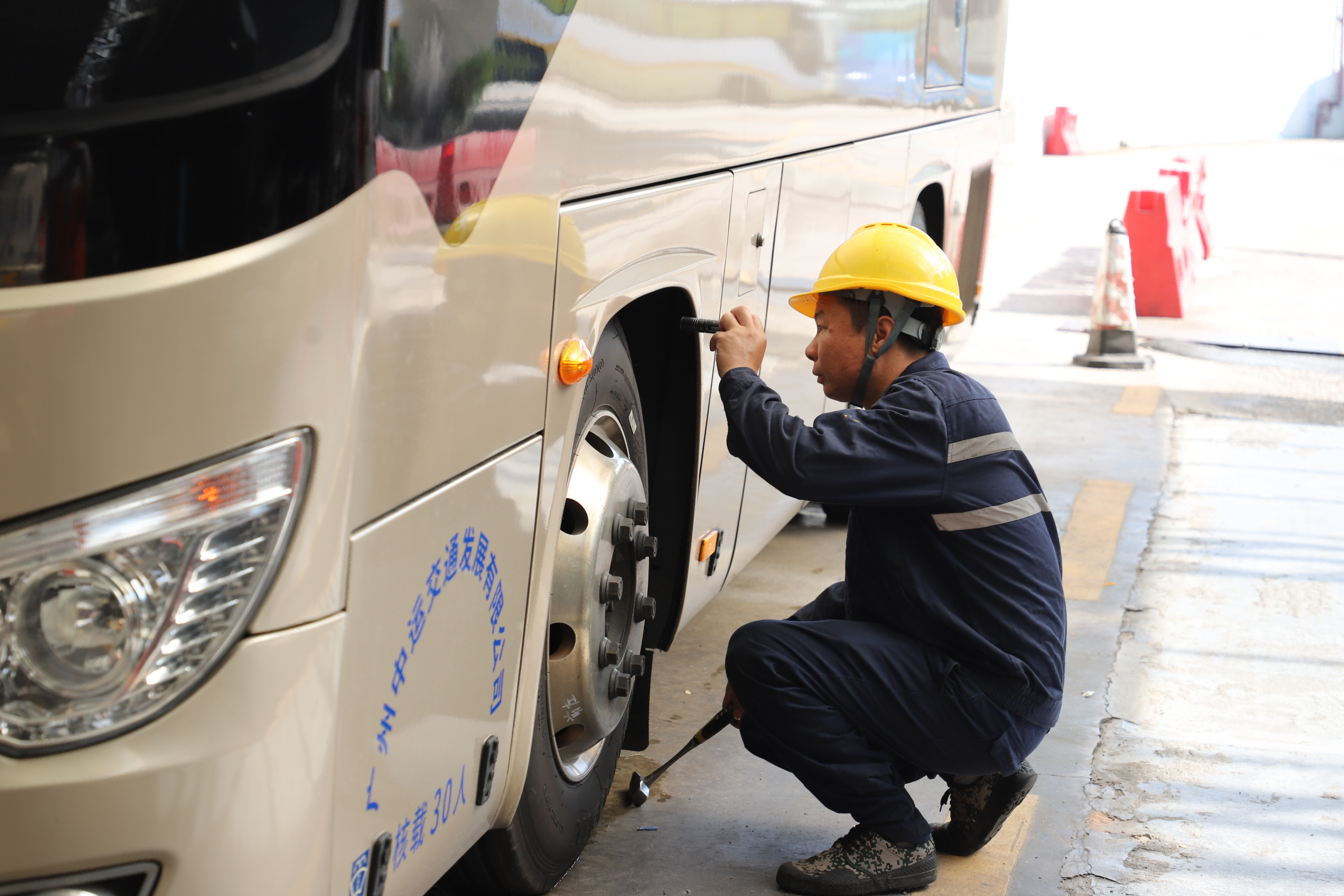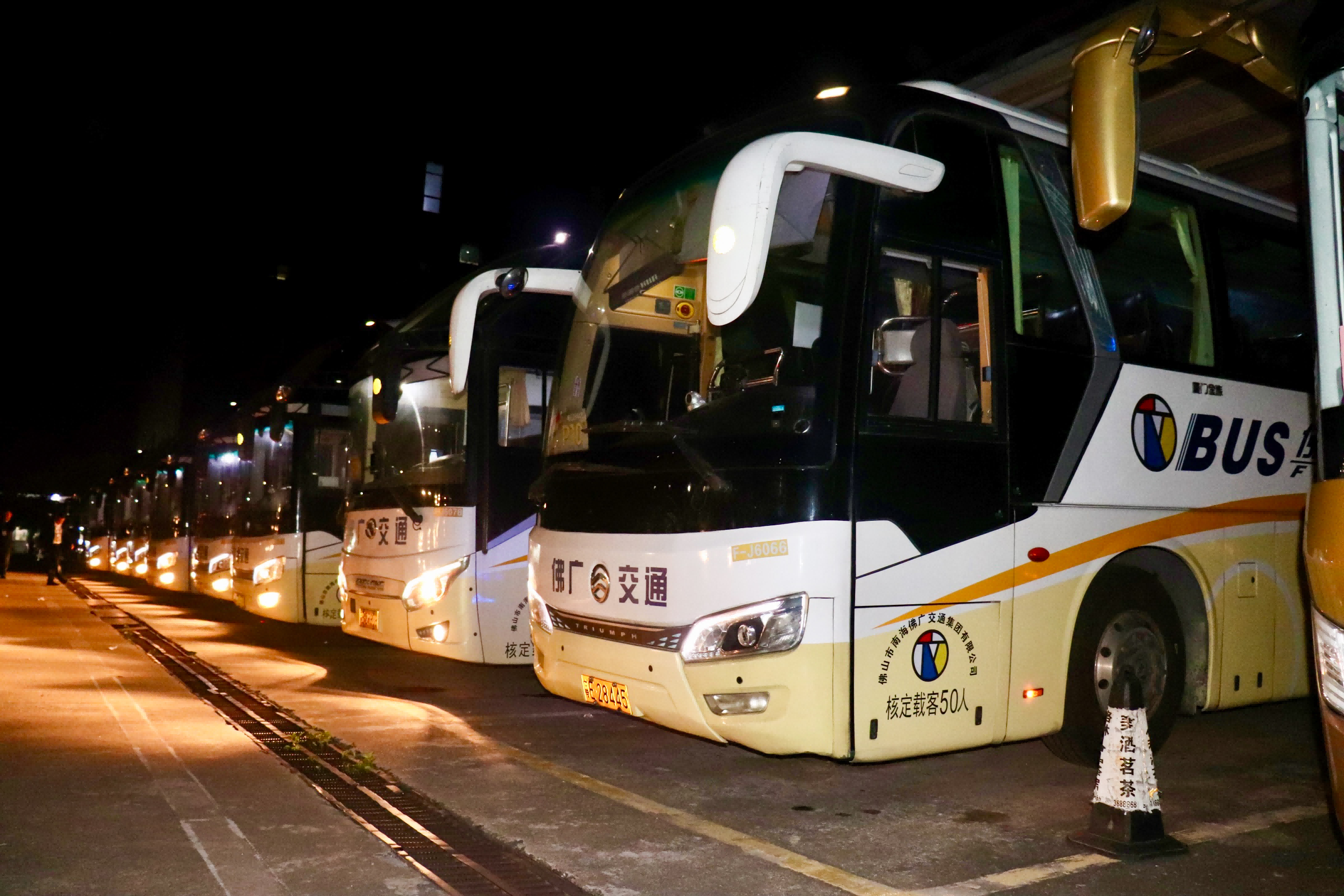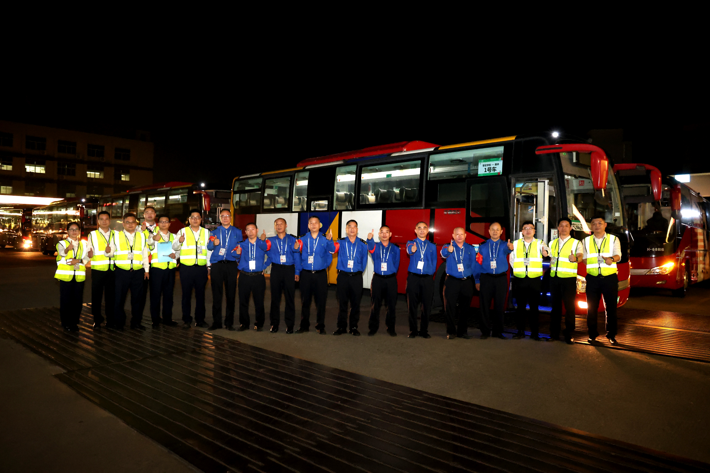 凌晨的大沥车站,广州巴士集团交通保障团队也在进行各项出发前准备工作。