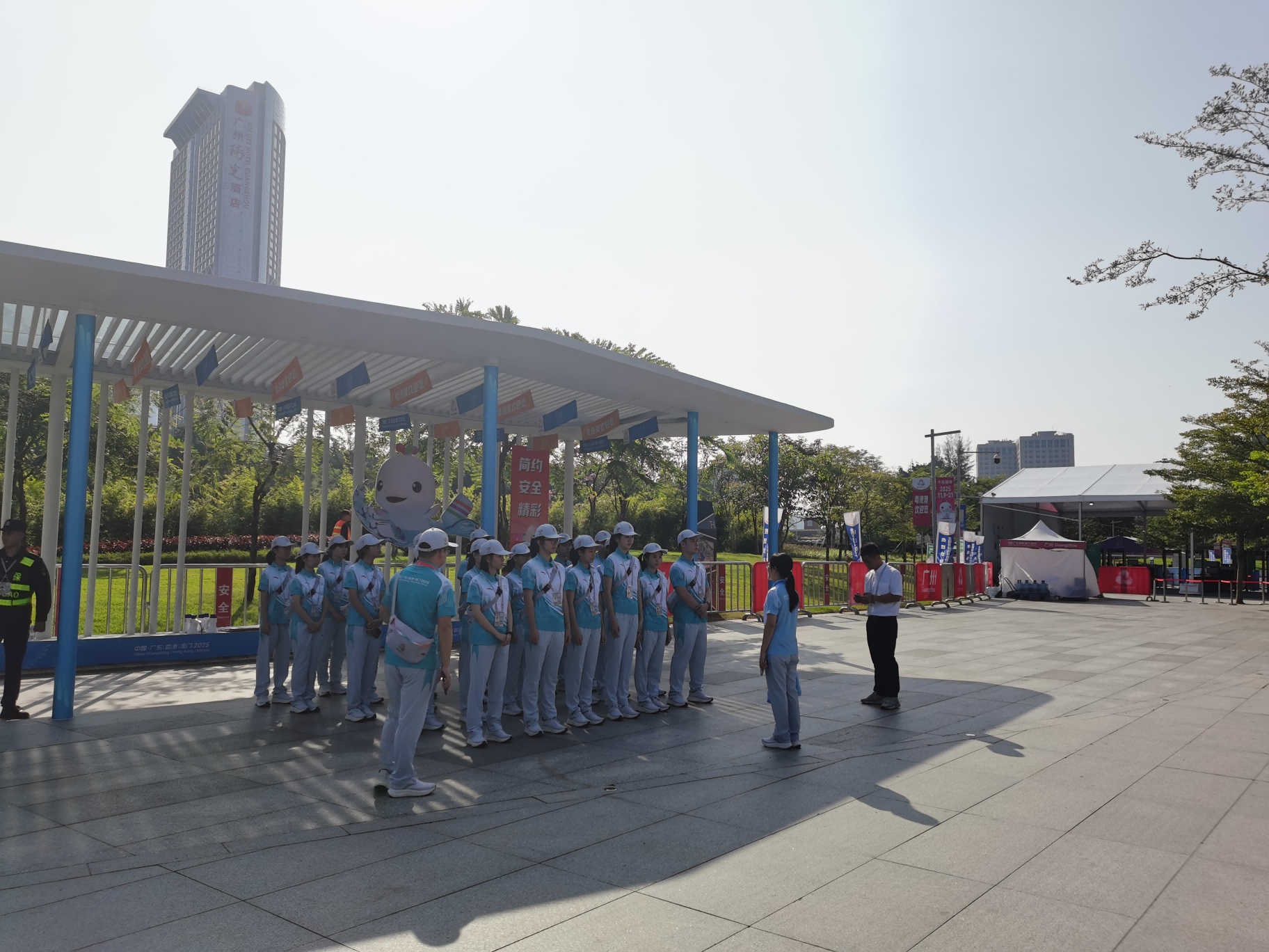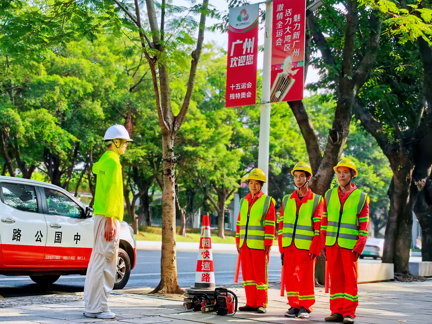 8:00,市道路养护中心南城养护所值守人员在省道S257线市广路、省道S111线番禺大道值守点整齐列队集合,迅速投入现场值守工作,为十五运会筑牢安全畅通的道路保障基础。