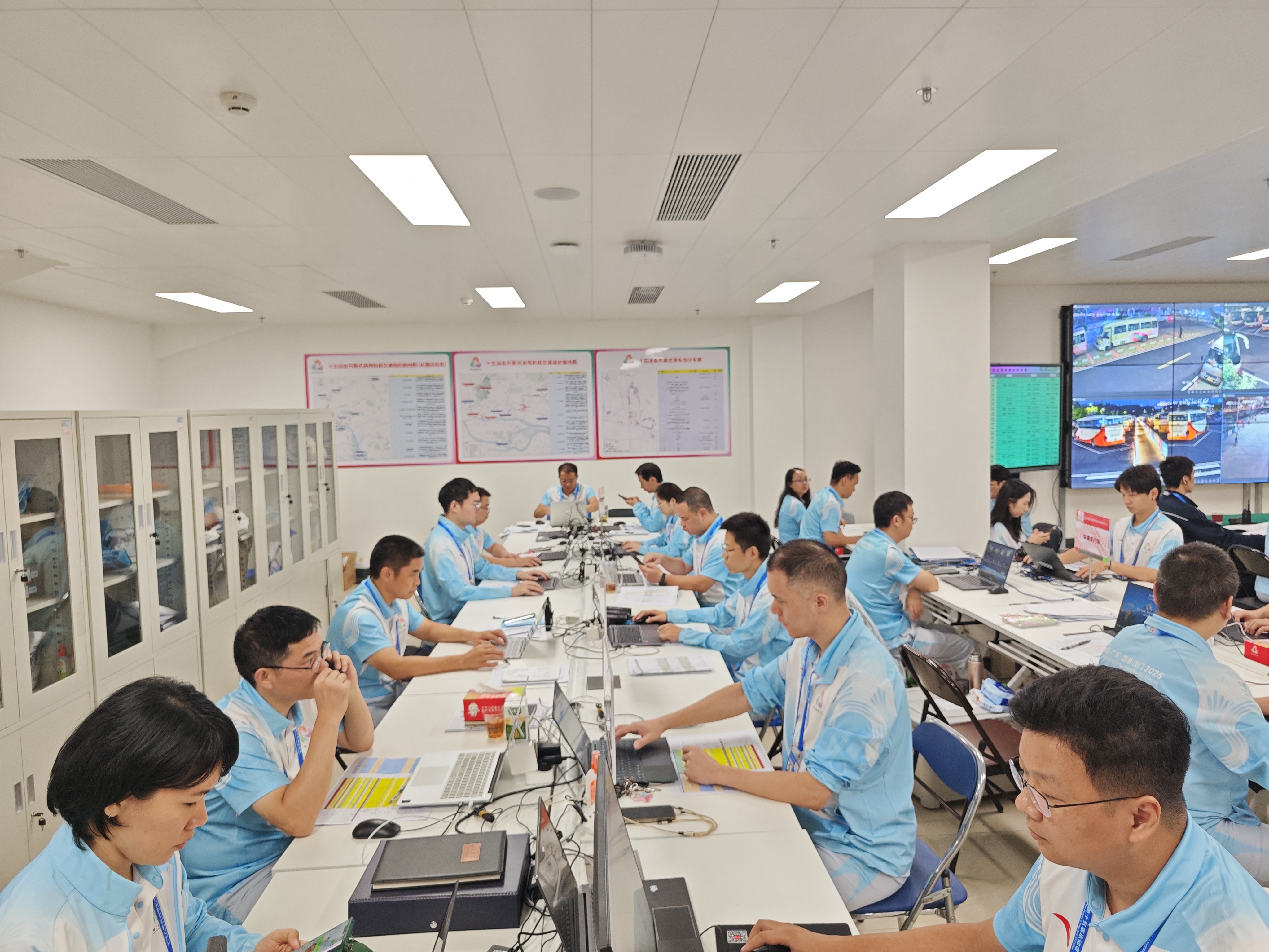 14:30,开幕式交通运行中心车辆调度组紧张工作中。