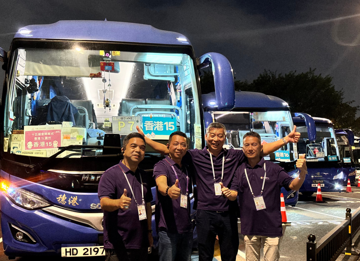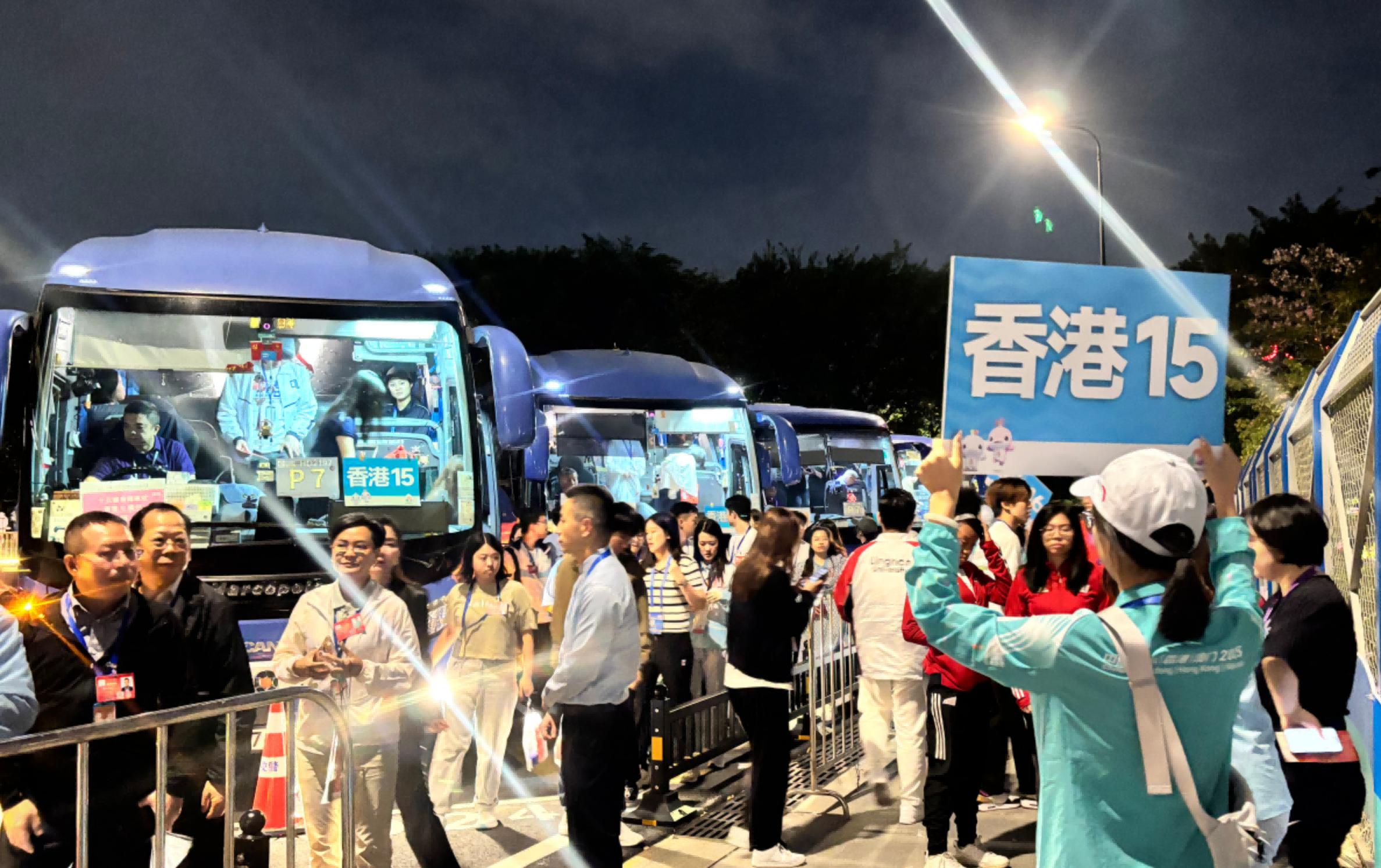 18:35,参加第十五届全运会开幕式的香港代表团专车顺利到达广州广东奥体中心P7停车场。