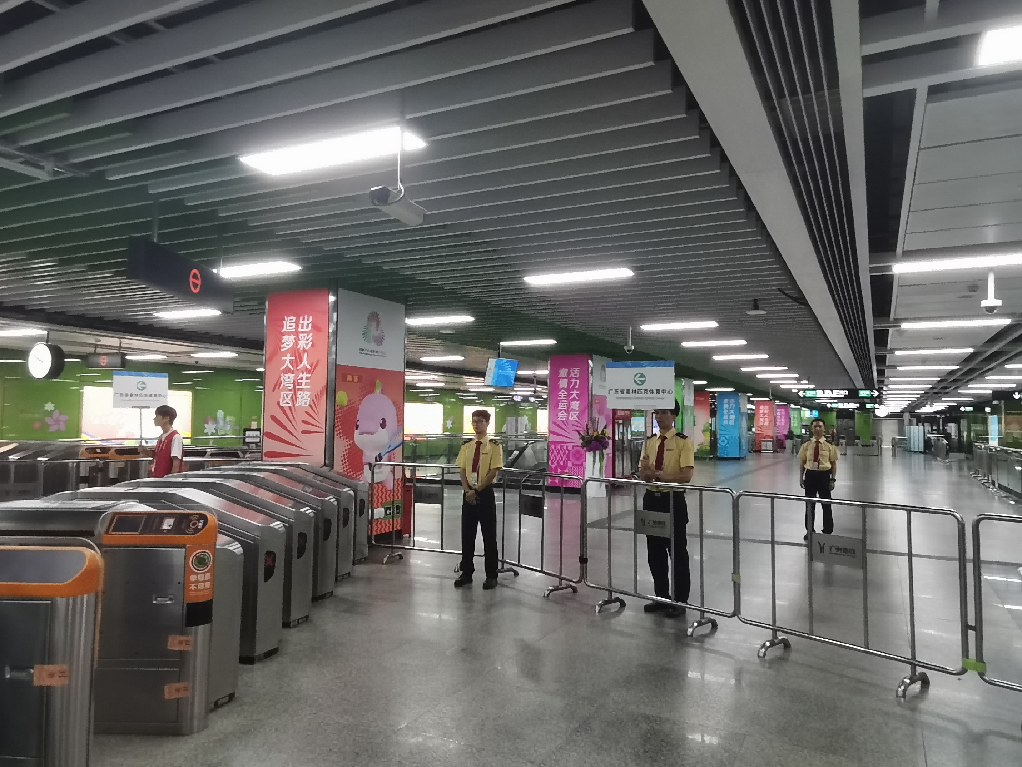 9:50,奥体中心地铁黄村站,工作人员准备就绪。