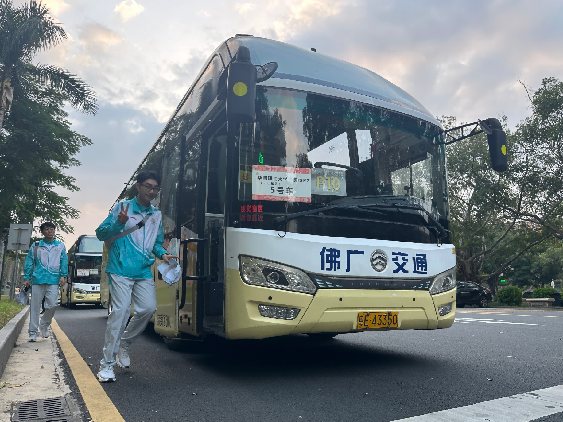 6时许,广州巴士集团交通保障专车到达华南理工大学(五山校区)接送志愿者,并于7时10分顺利发车。
