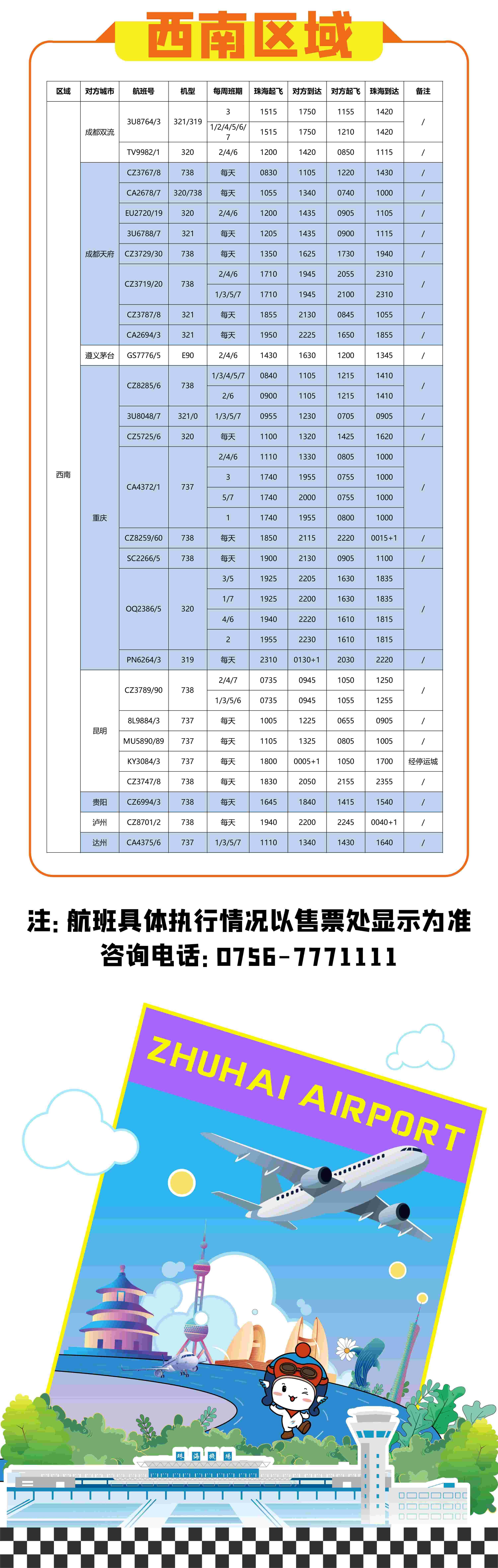 2025年10月26日起,珠海机场正式执行2025年冬航季航班计划。此次航班换季,珠海机场运营航空公司达28家,通达航点59个,其中直达航点50个,旅客出行选择更加丰富。