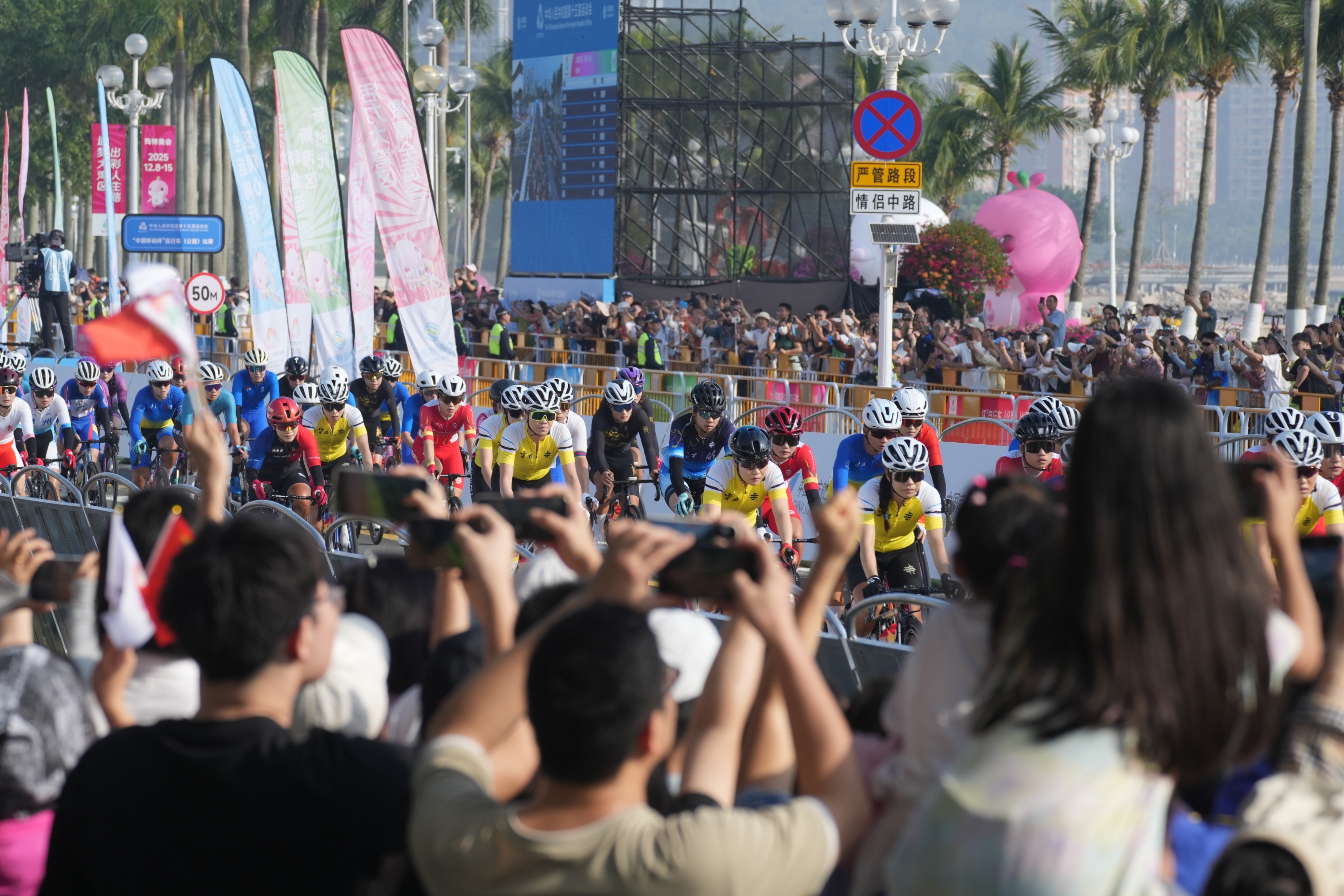 赛道选取珠海与横琴粤澳深度合作区的城市道路,138.7公里的赛程串联起两地风光。恰逢周末晴好,情侣路沿线的赛道旁,大批观众聚集观赛,为奋力骑行的选手们呐喊助威,现场氛围热烈。