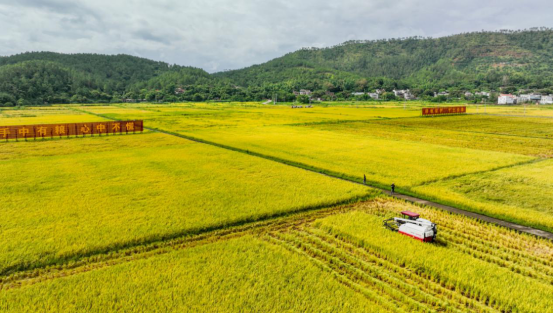 河源万绿智慧无人农场的无人收割机可以实现田间精准作业。