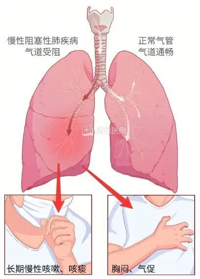 慢阻肺虽然发生于肺,但会影响全身,由于呼吸气流受阻,可能引起慢性肺源性心脏病、全身脏器功能紊乱,而且常常合并肺癌、骨质疏松、焦虑抑郁等疾病,降低患者的生命质量。