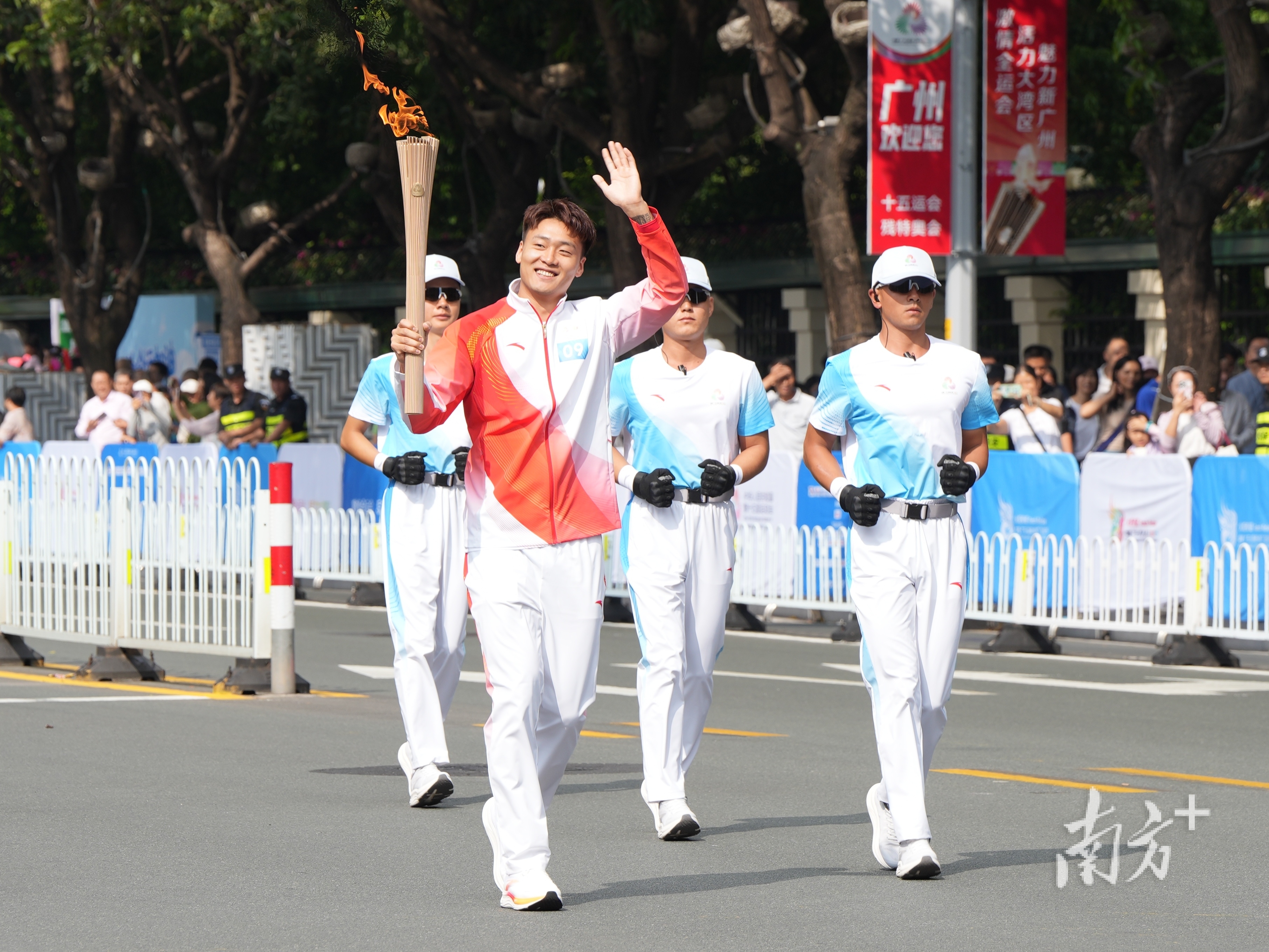 担任广州站第9棒火炬手的,是中国国家男子篮球队队长赵睿。