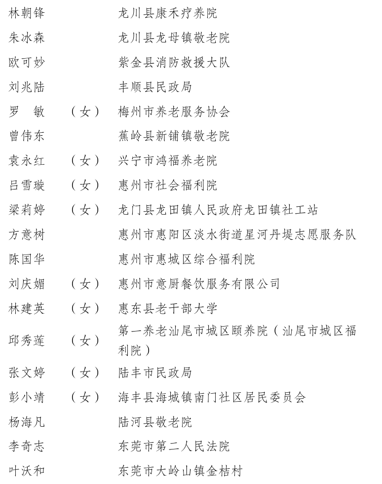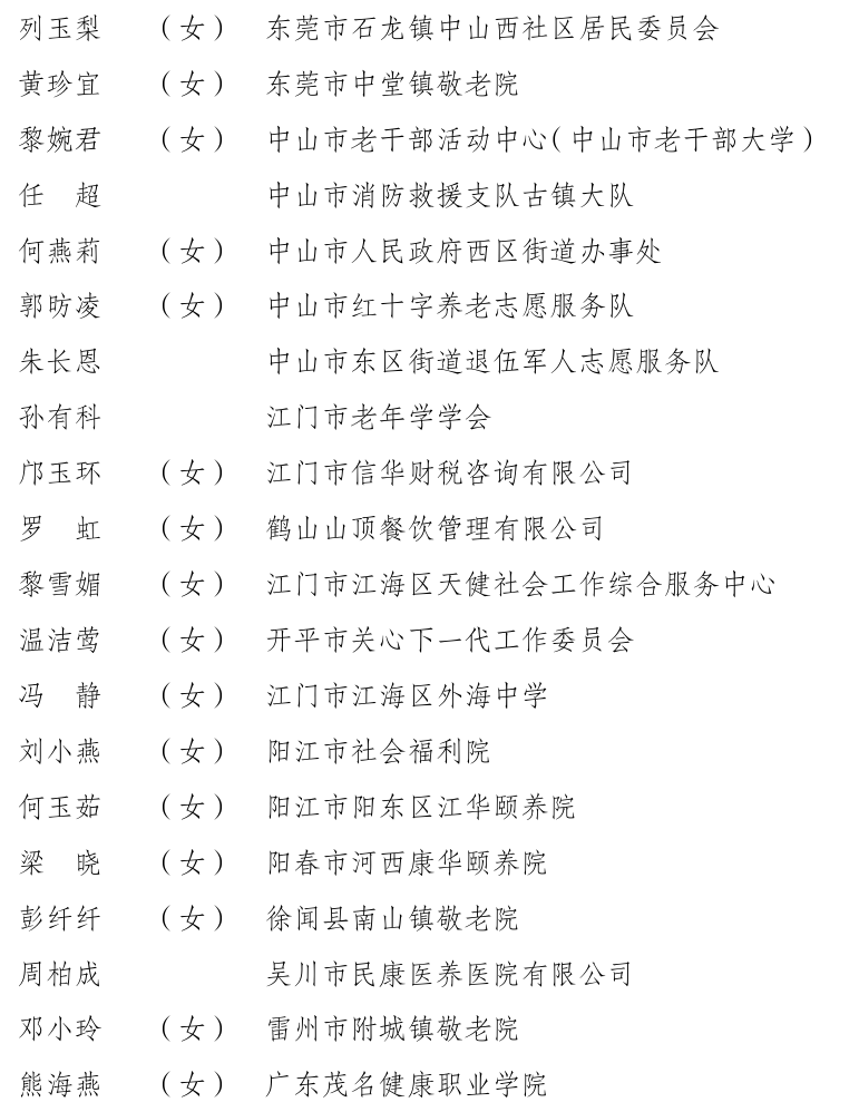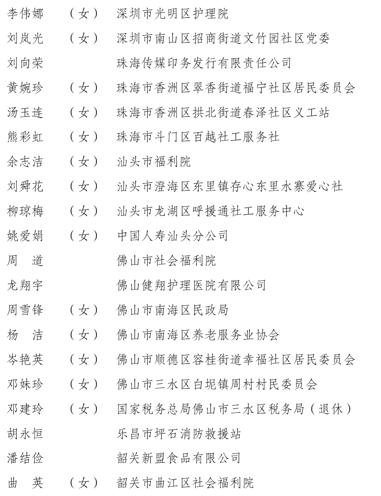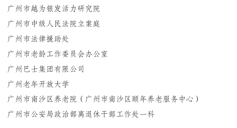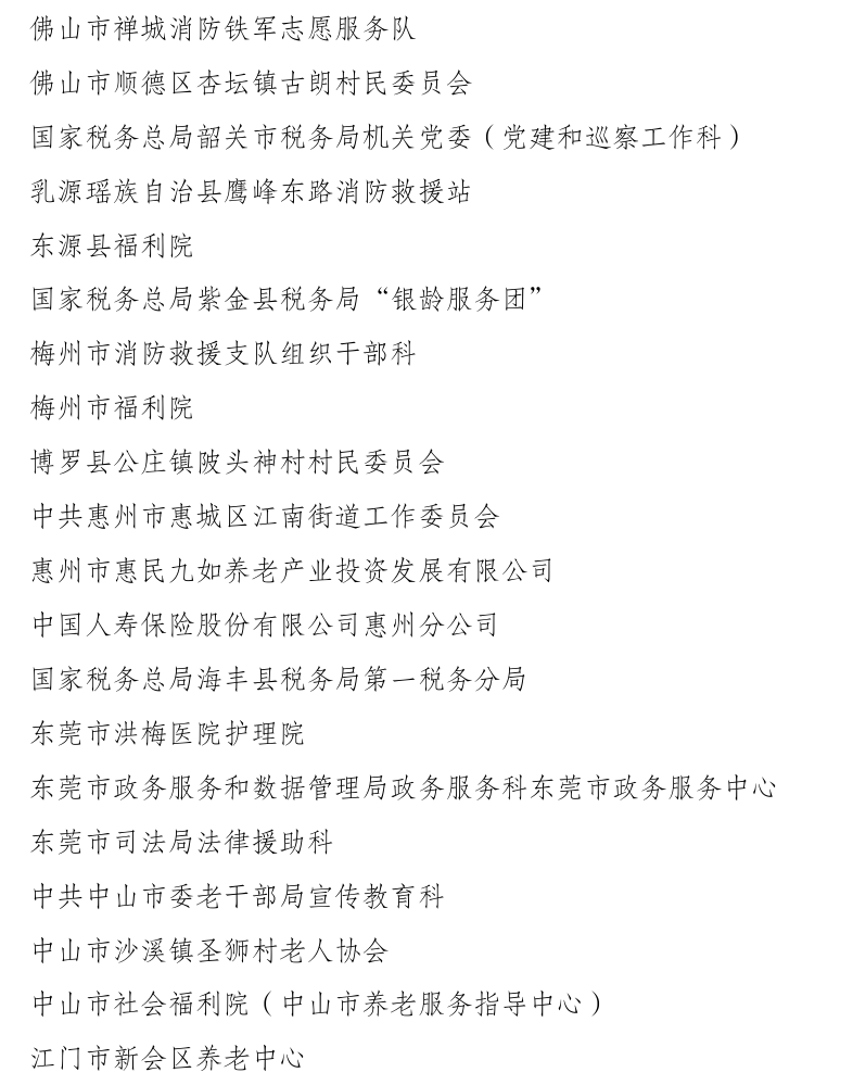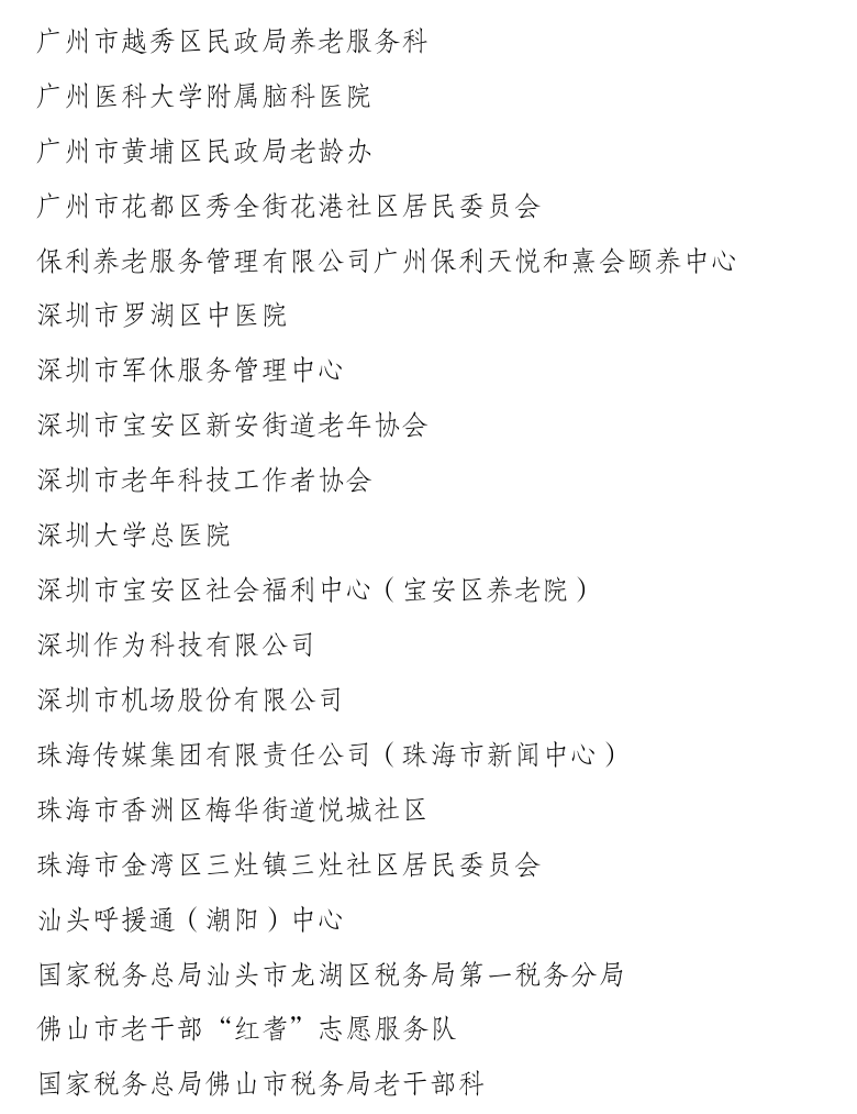 日前,全国老龄工作委员会办公室发布关于表彰全国“敬老文明号”和全国“敬老爱老助老模范人物”的决定,授予1290个集体全国“敬老文明号”称号,授予1990名个人全国“敬老爱老助老模范人物”称号。其中,广东70个集体被评为全国“敬老文明号”,110人被授予全国“敬老爱老助老模范人物”。