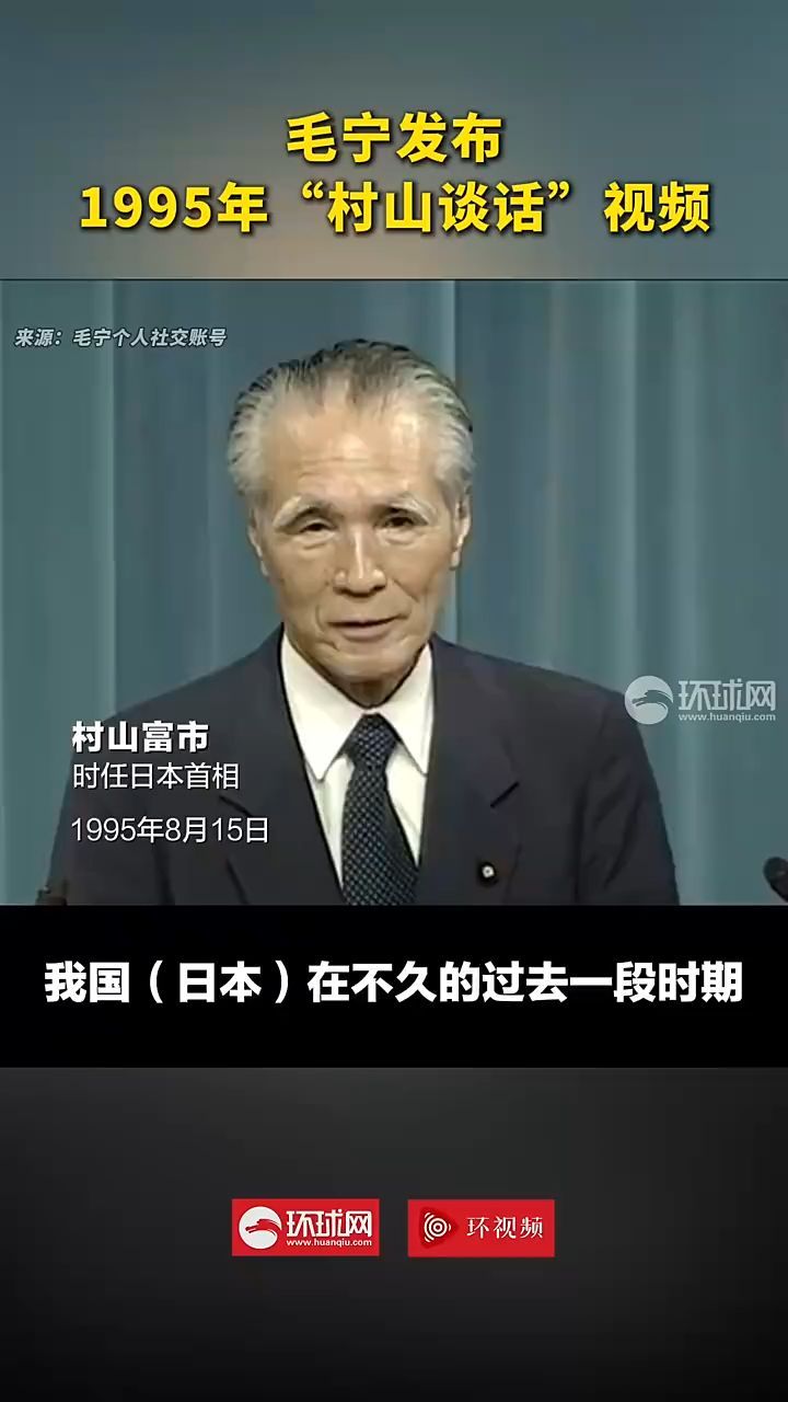 毛宁在配文中表示,“是时候回顾1995年的‘村山谈话’了,当时的日本首相村山富市承认了日本在二战期间的侵略行为并进行了赎罪,同时向受害国道歉。”