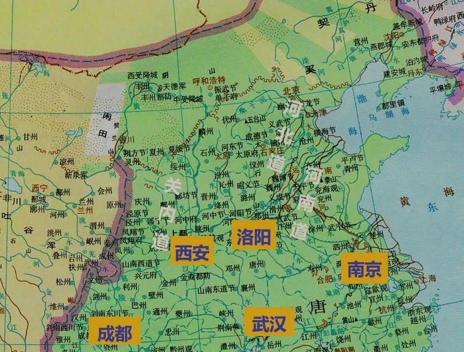 ▲唐代能考的地方都在黄河流域,长江流域寂寂无闻。图源:中国历史地图集