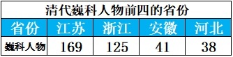 清代产生巍科人物539人,排名前四的省份及其人数,分别如下: