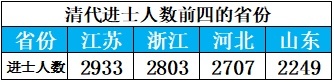 在清代总计26800多名进士中,排名前四的省份及其中举人数,分别如下: