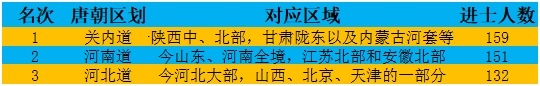 其中,关内道159人,河南道151人,河北道132人,进士人数位居前三。