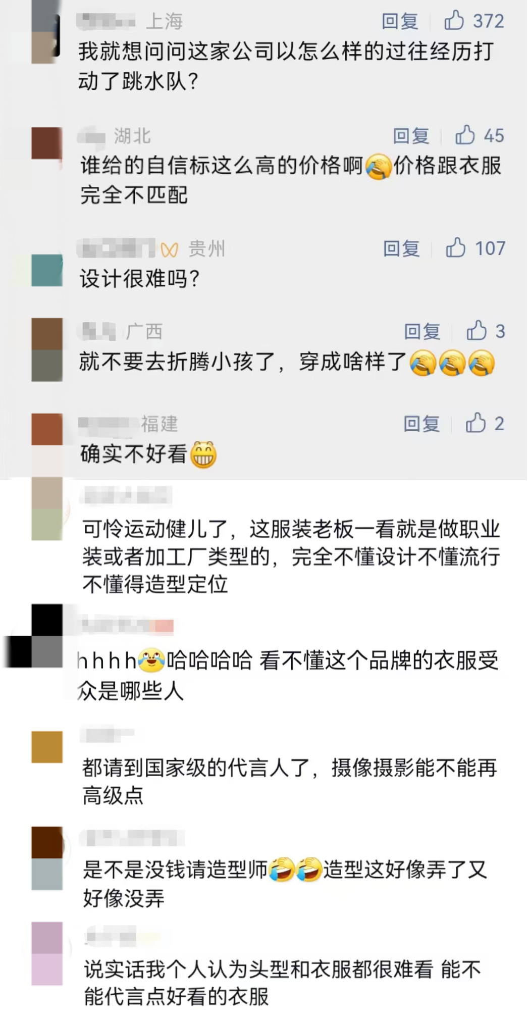 “衣服太丑,和全红婵、陈芋汐等代言人的气质完全不搭。”