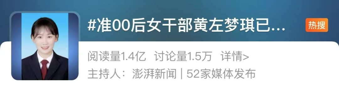 4月25日,吉安县委组织部工作人员告诉记者,黄左梦琪“确实比较优秀,工作能力受到认可”。记者致电永阳镇政府办公室,接线工作人员表示,黄左梦琪“很优秀,很好,工作能力很强,和同事们相处融洽”。