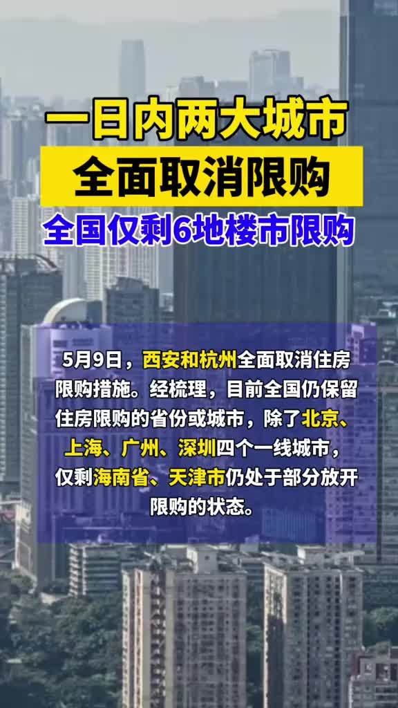 杭州、西安全面取消住房限购,全国还剩6省市执行限购