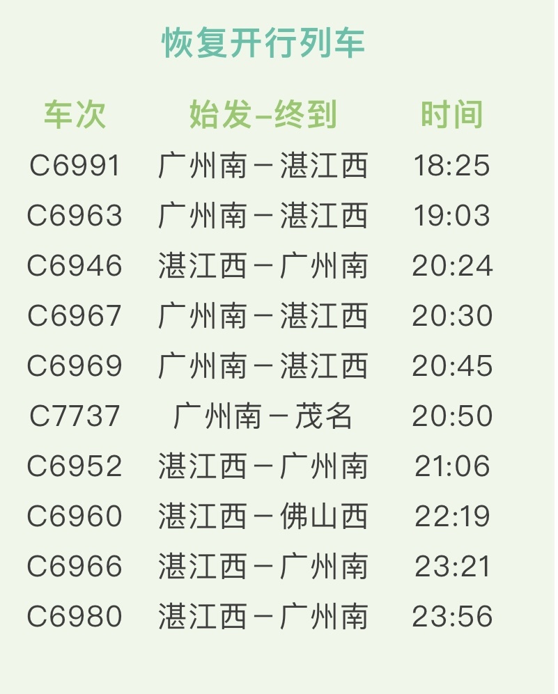 广州南站往返湛江等方向列车逐步加开、恢复开行