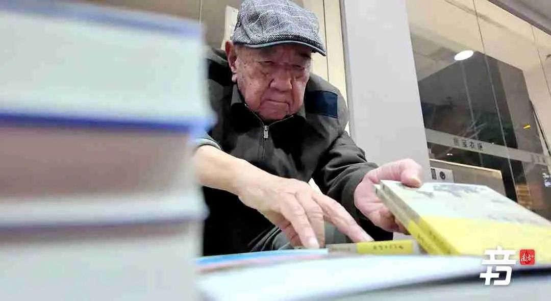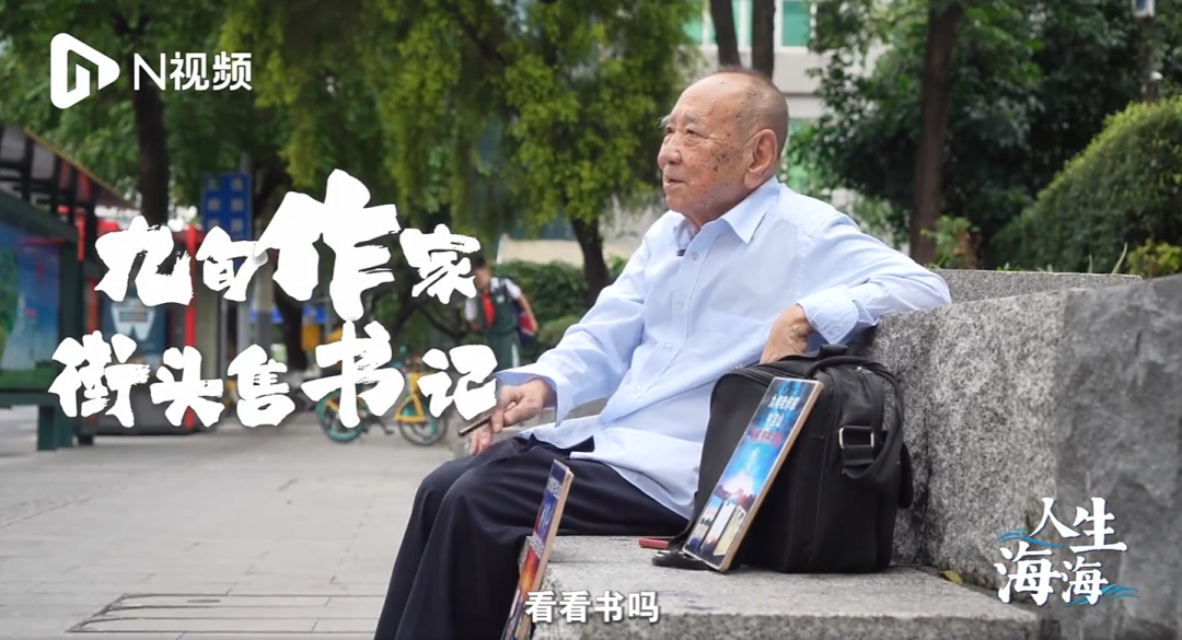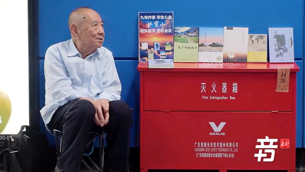 2023年,当时88岁的林宝山带着一张折叠凳子,来到广州老城区地铁站的出站口摆摊卖书。