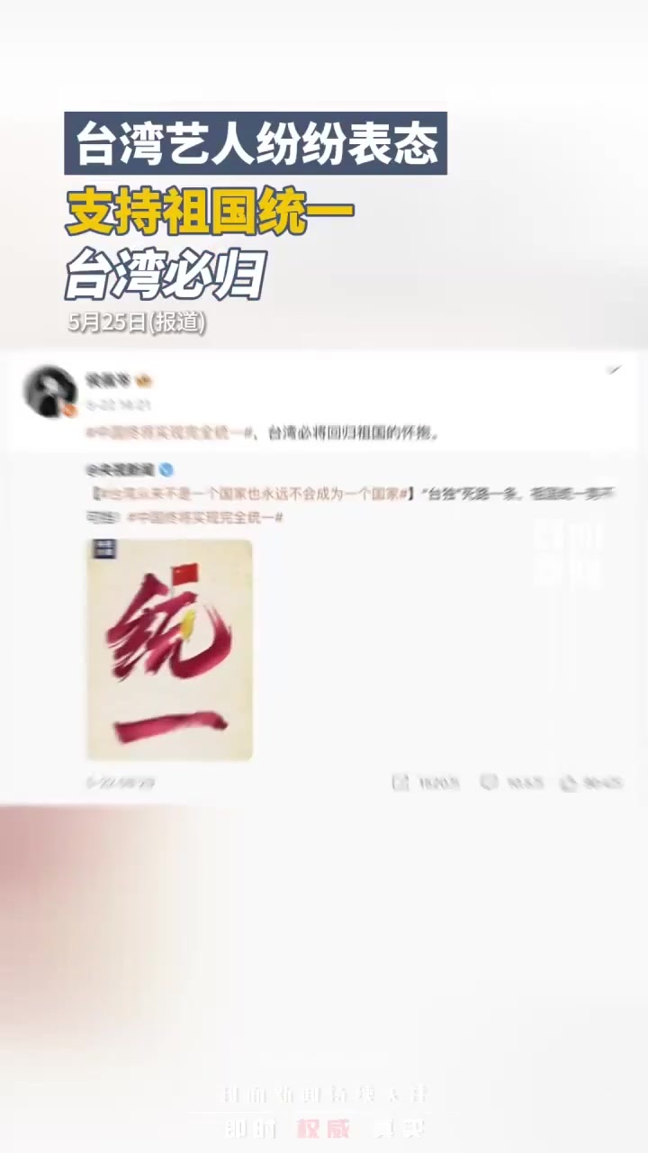 台湾艺人纷纷表态支持祖国统一,台湾必归!