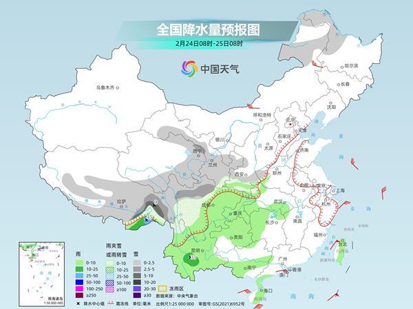今夜起至后天,南方阴雨再度发展,并且范围东扩南压,会覆盖江南、华南大部地区,近期气象干旱最为严重的广西东南部、广东西南一带将迎来中雨。此外,今明两天,青藏高原、川西高原等地的雨雪天气仍会持续,局地有强降雪。