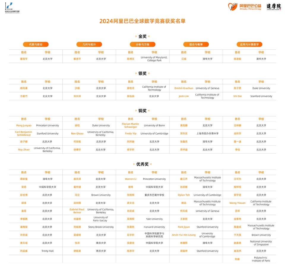11月3日,记者留意到,阿里巴巴全球数学竞赛获奖名单已正式发布,共有86名选手获奖,其中金奖5名,银奖10名,铜奖20名,优秀奖51名。
