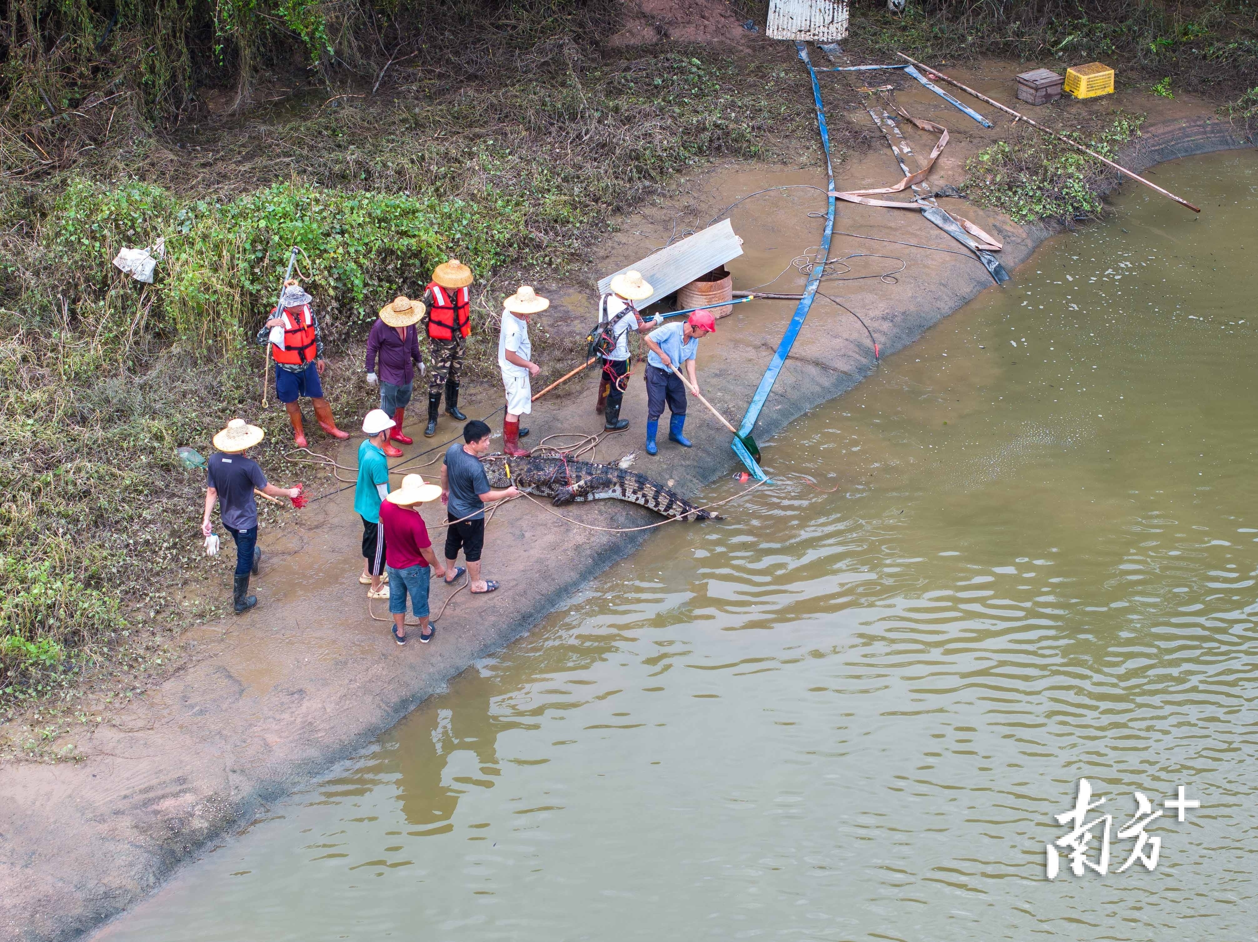 茂名一养殖场部分鳄鱼暴雨中出逃,已抓回36条