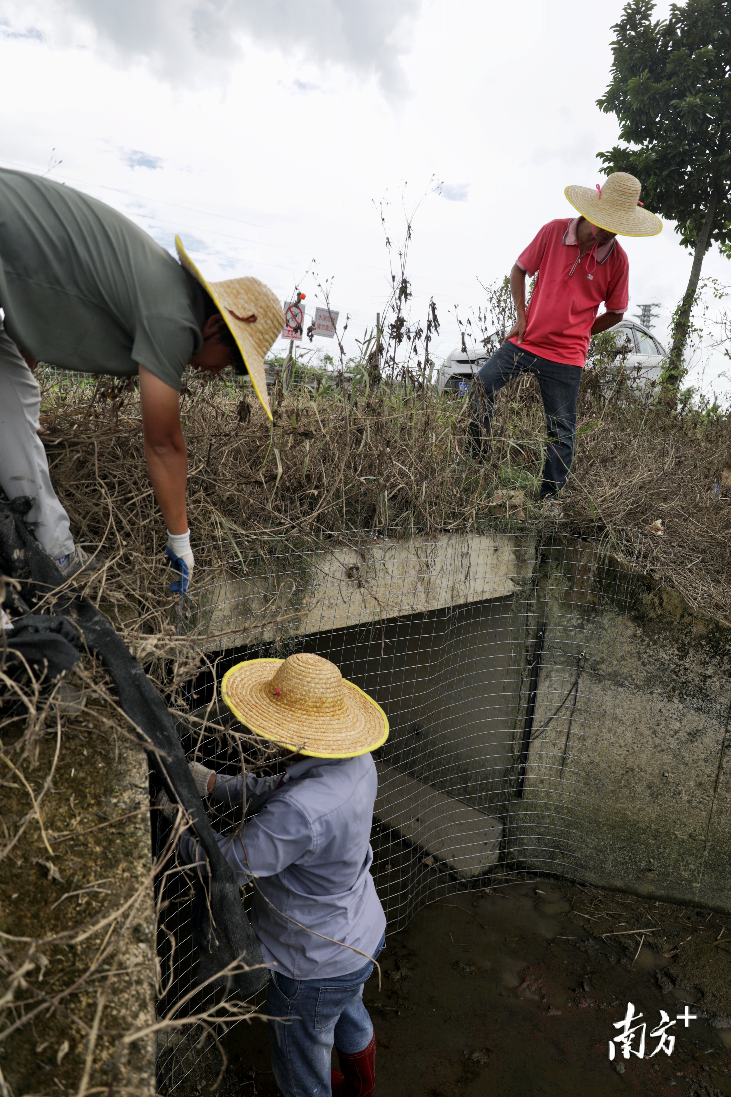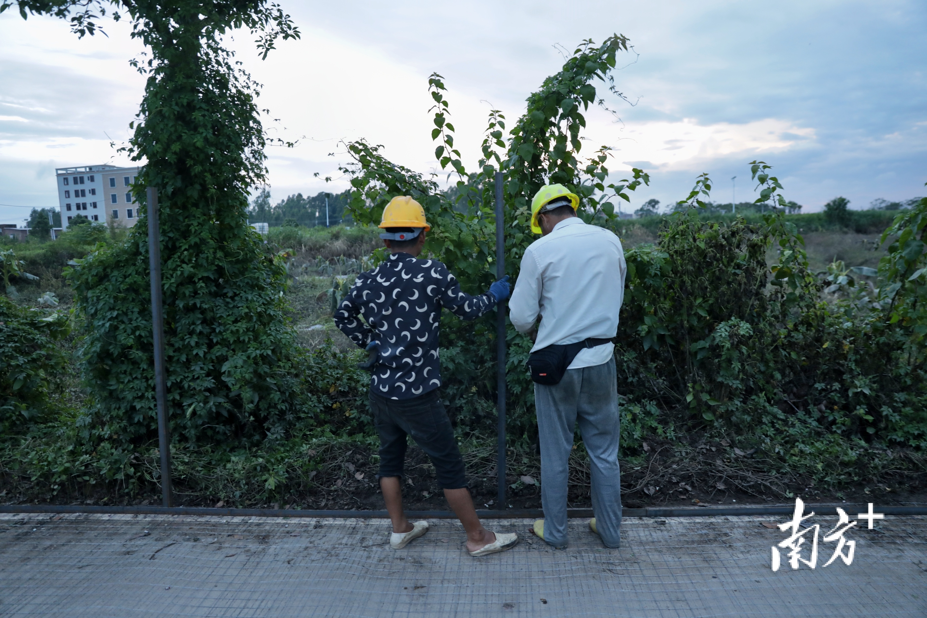 傍晚,当地不少村民抱着一团团铁网,开始到湿地边进行加固,涉水地区不少目前已经围蔽。“从周二到现在,没停过,要尽快把水池围起来。”师傅邓大哥告诉记者,为了防止鳄鱼出逃,他已在此加装围蔽三天,累了就席地而坐,周二还干了通宵“整个(工程)要好几公里长。”