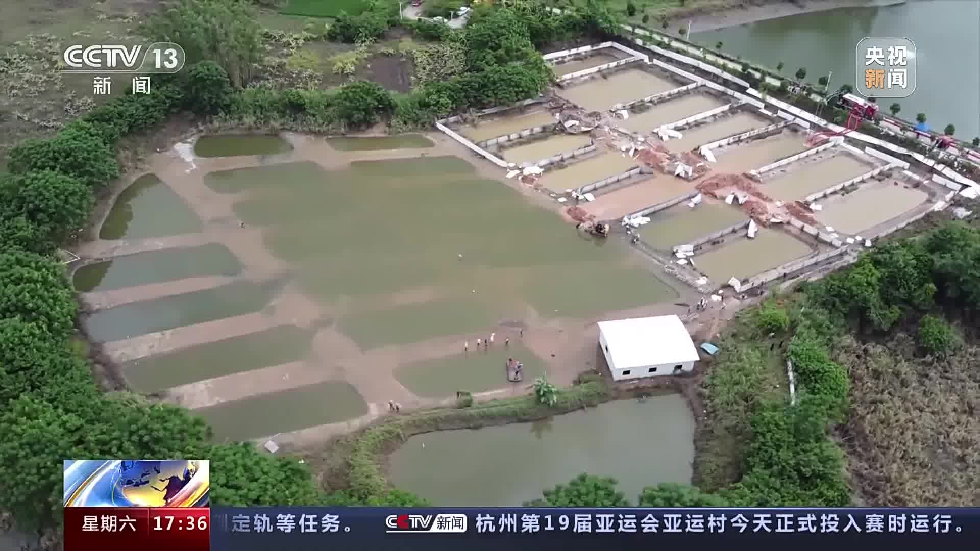 9月13日中午,养殖场附近的一个小池塘旁边,一位大叔正在清理房屋,地面上还残留着暴雨过后的痕迹,有数名工作人员已经在附近的鱼塘入口看守,以防池塘中鳄鱼的突然出现。