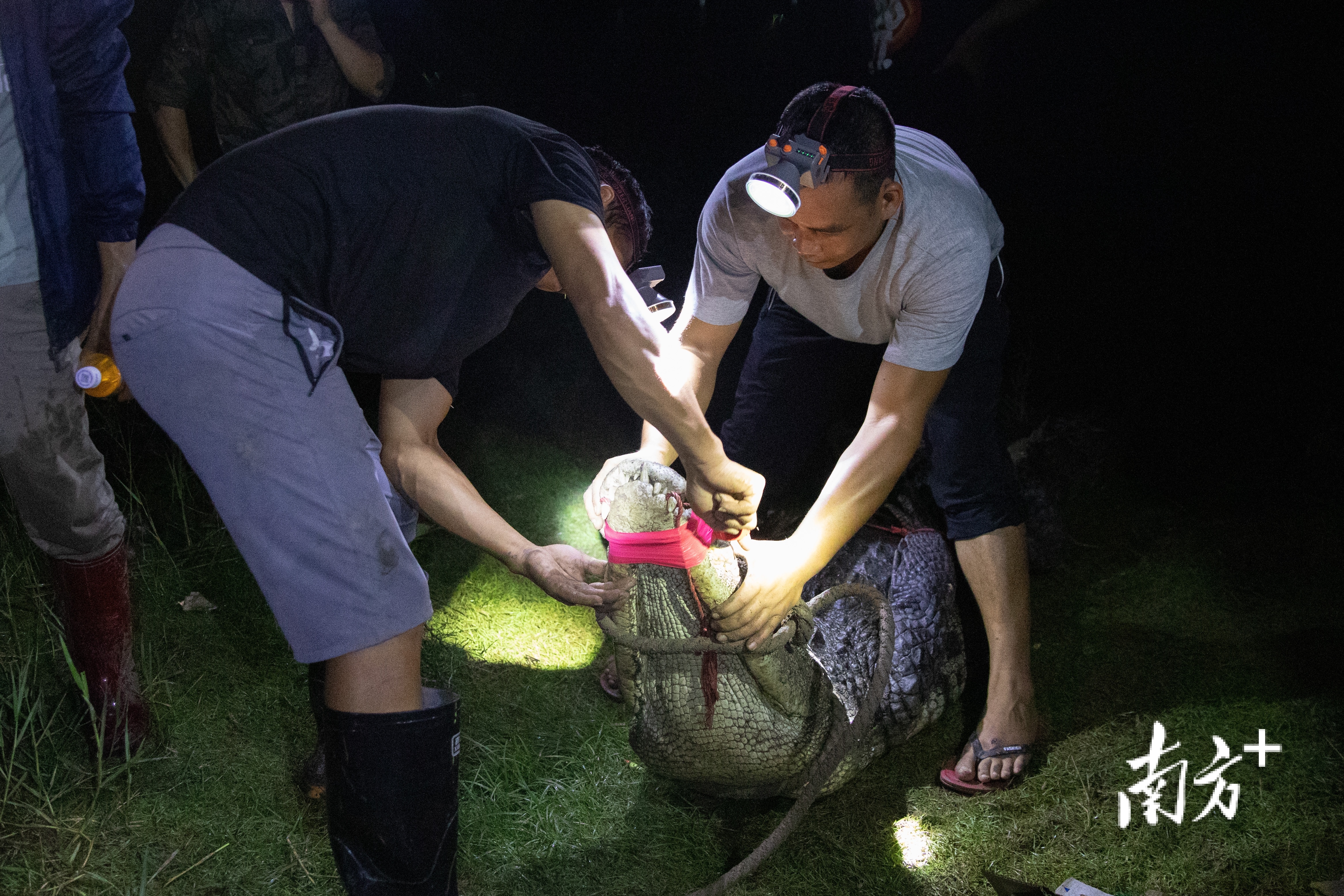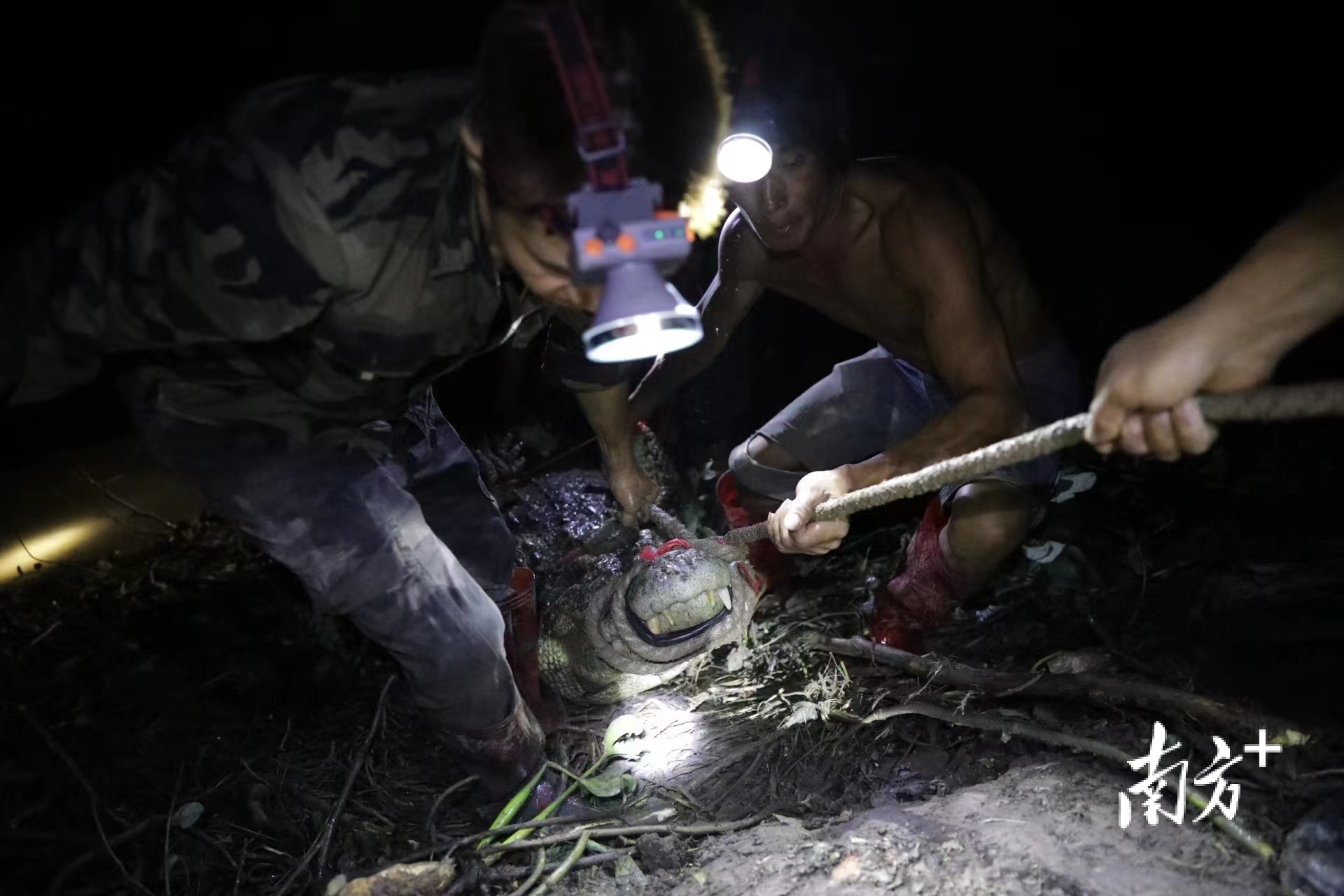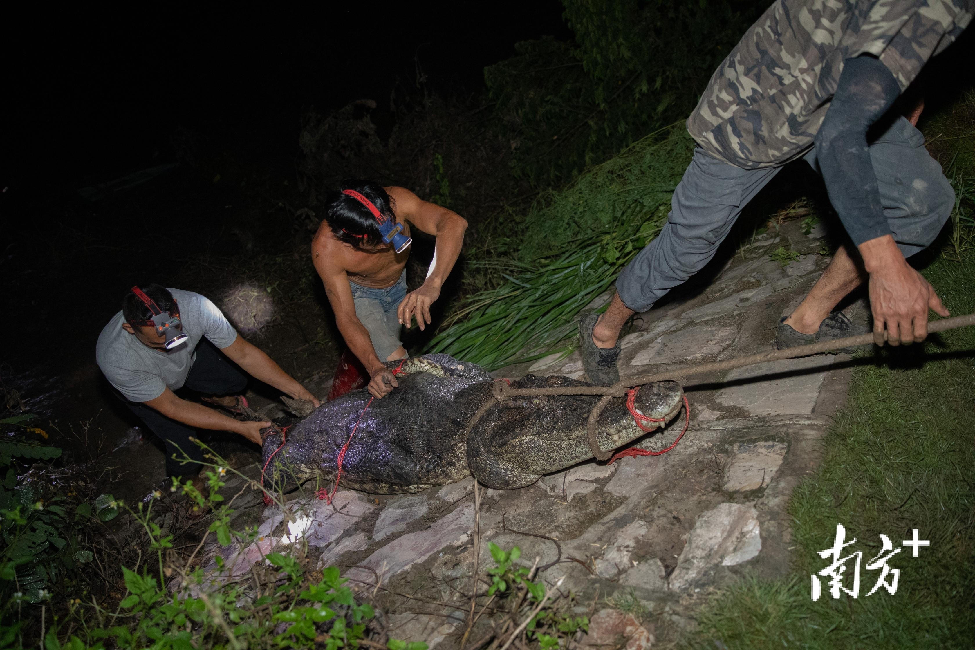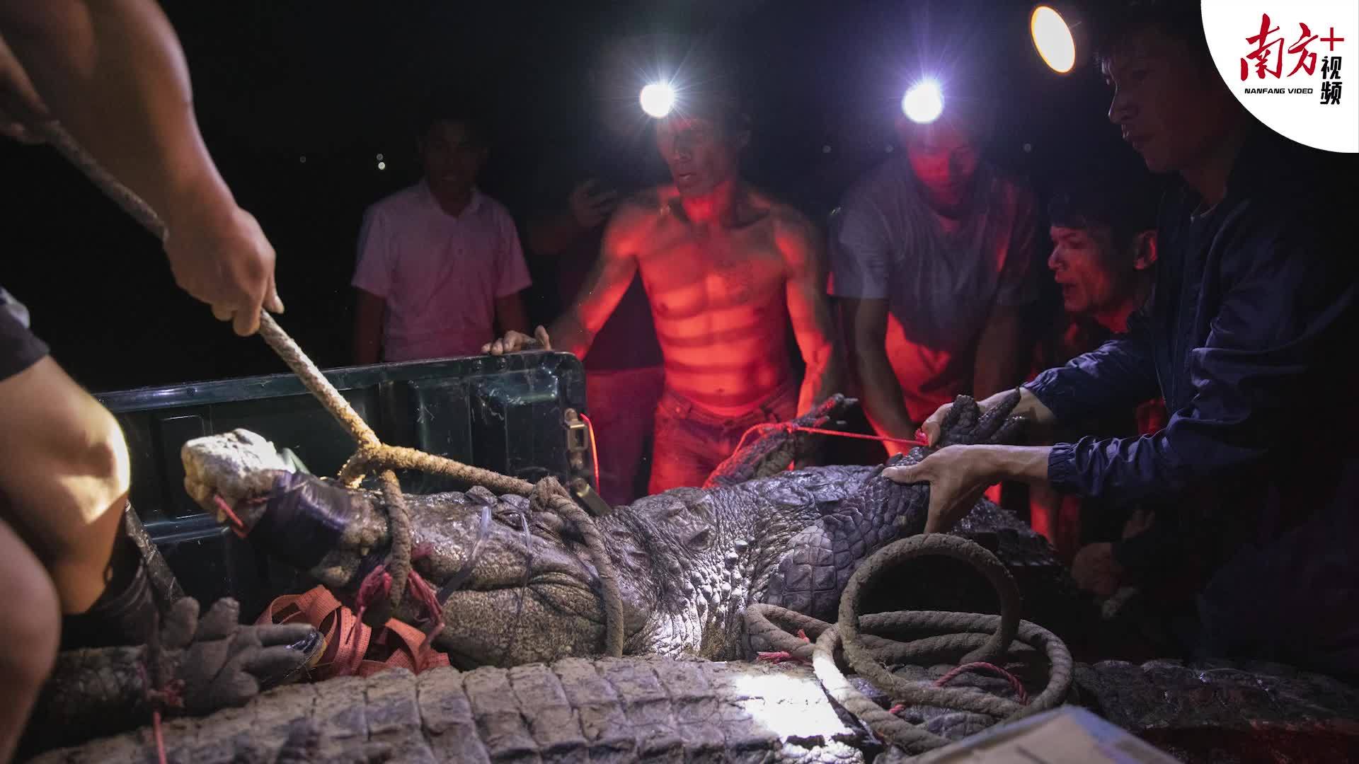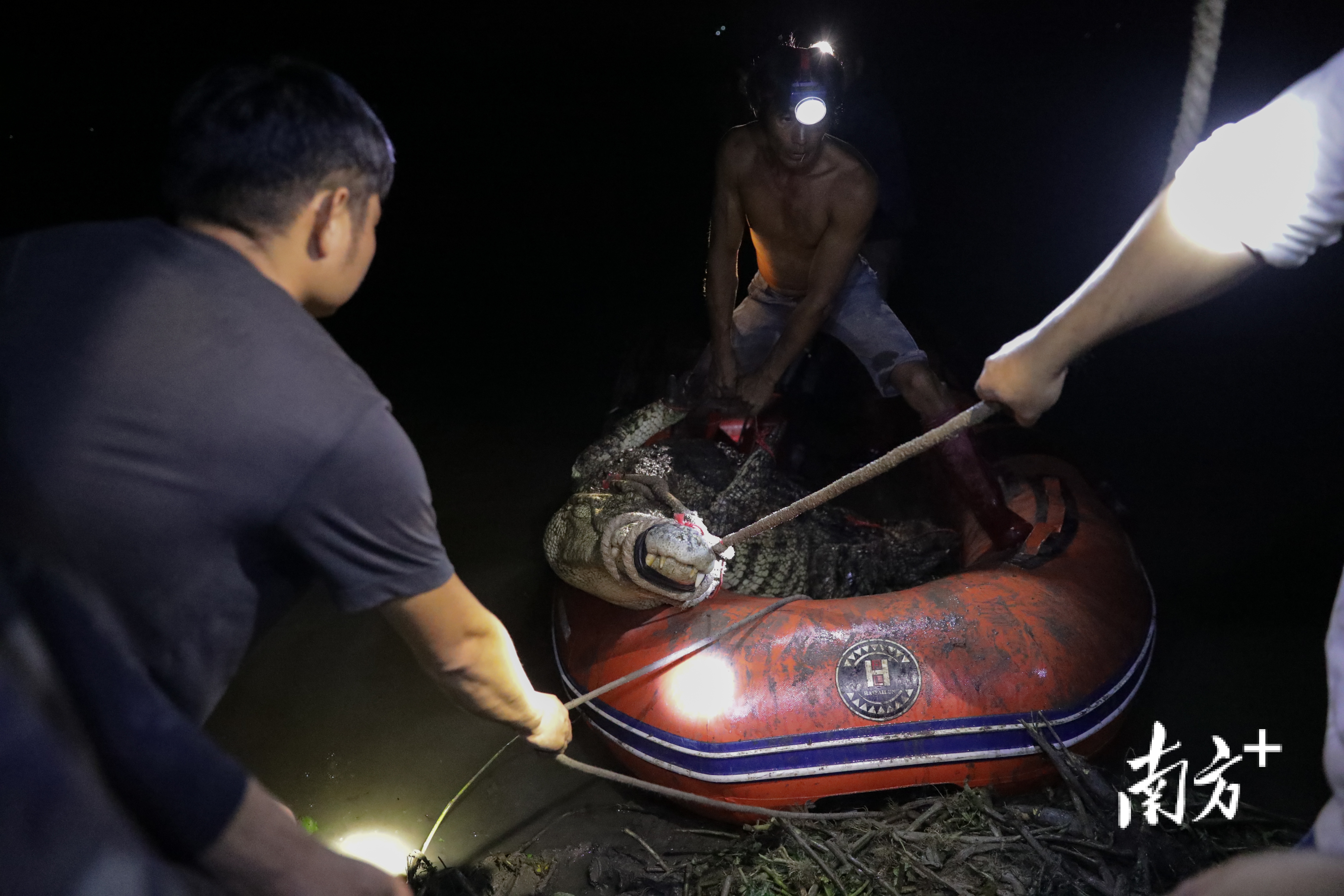 鳄鱼抓捕现场:农业专家到场指导,捕鱼队凌晨下水搜索