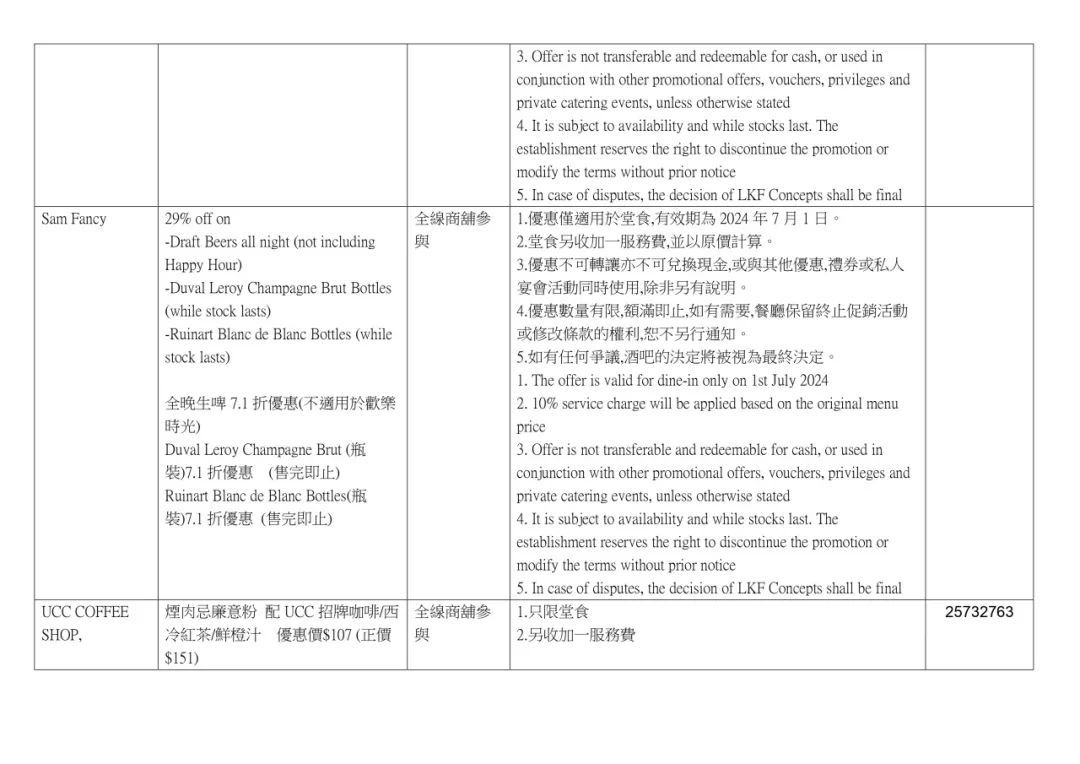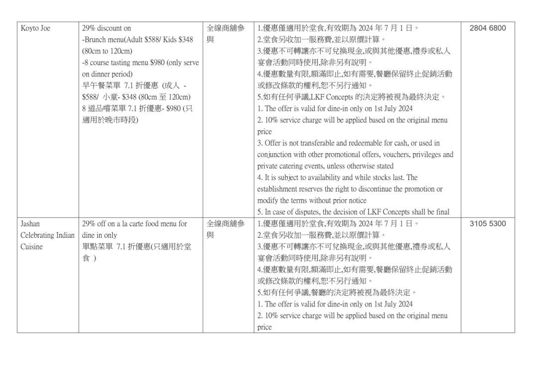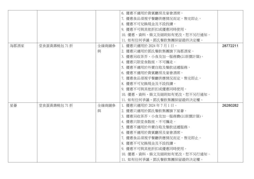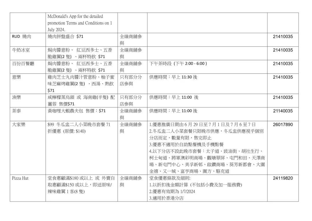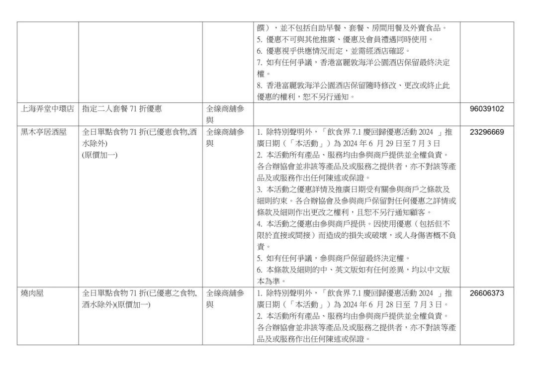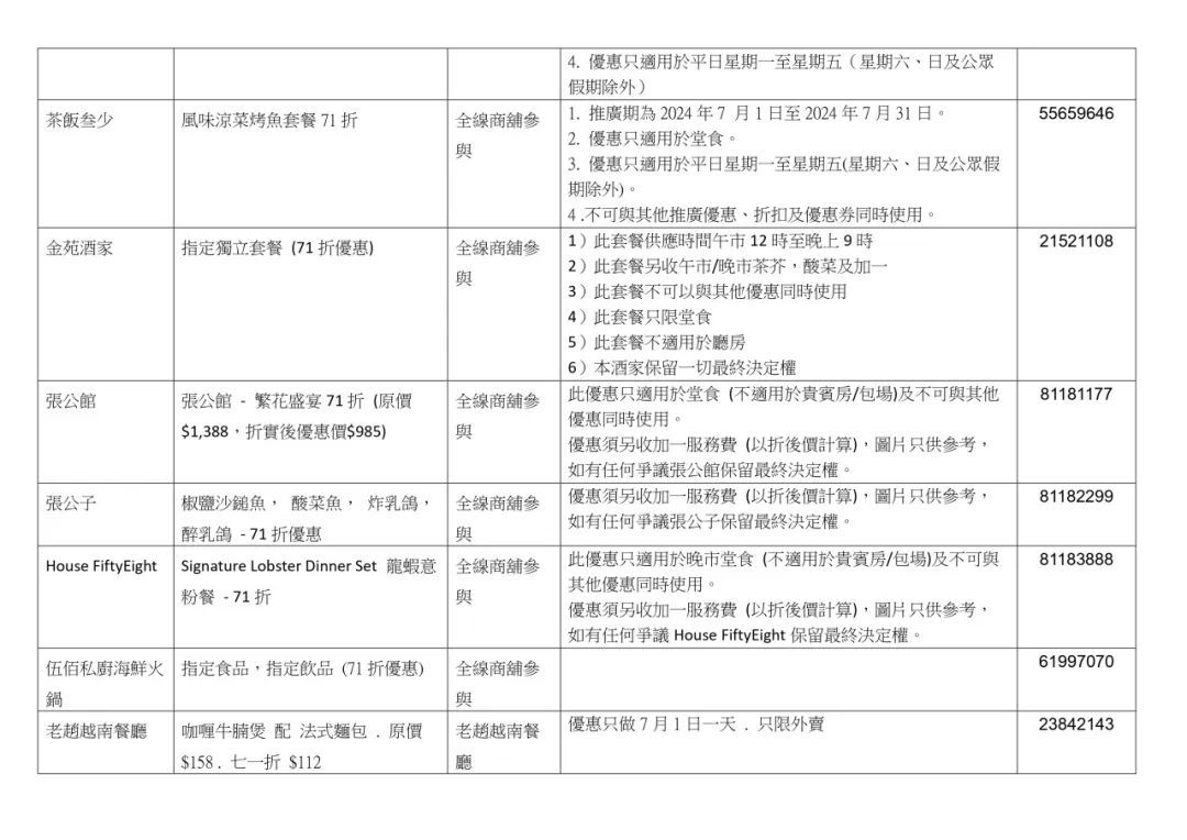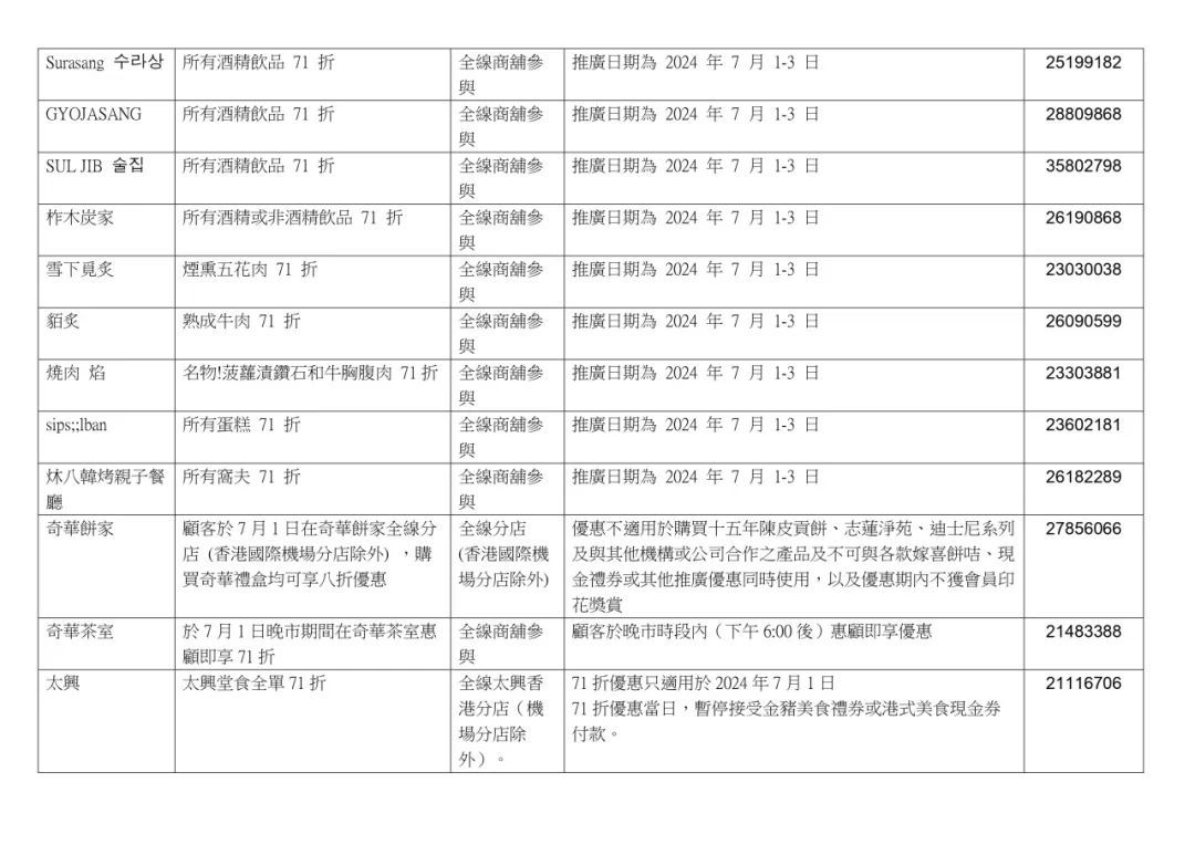 香港饮食界也推出“饮食界7.1庆回归七折大优惠活动”,超2000家香港餐饮店在7月1日当天推出招牌菜品7.1折优惠,更有商户将优惠从仅7月1日延长至整个7月,与香港市民和游客共同分享庆回归的喜悦。