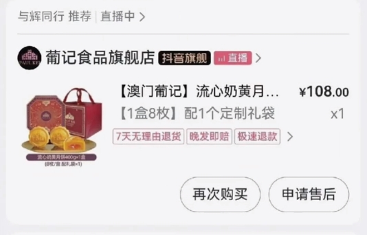 就在“疯狂小杨哥”因为在直播间售卖“香港美诚月饼”涉嫌虚假宣传而闹得沸沸扬扬之时,关于直播间里的月饼风波还在持续发酵。9月18日,有网友向南方+记者爆料表示,此前“与辉同行”直播间中售卖的澳门葡记月饼,也涉嫌有质量问题。
