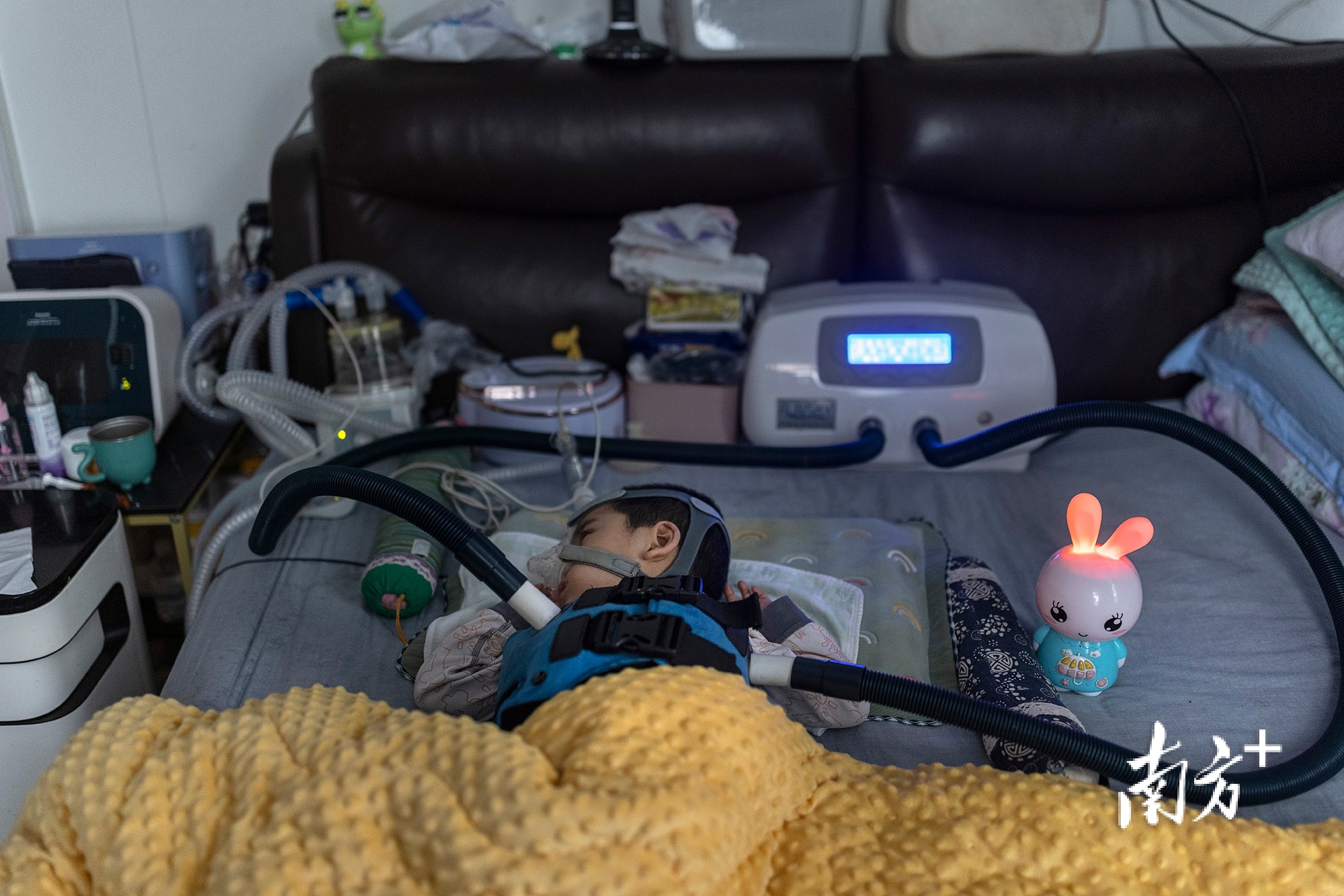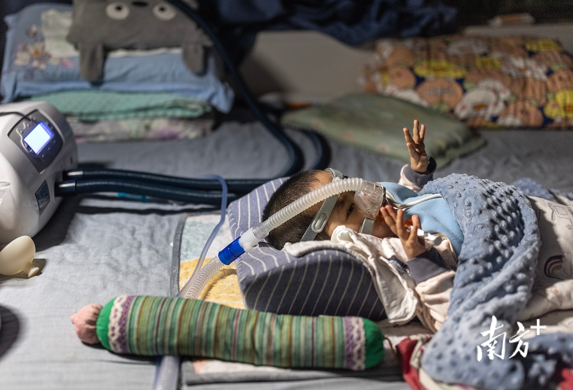 每天清早,小“米粒”都要穿着拍痰背心进行治疗。