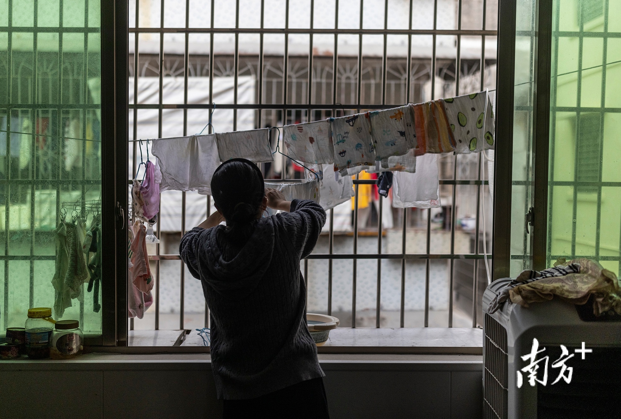 杜佳正在晾晒小“米粒”的衣物。