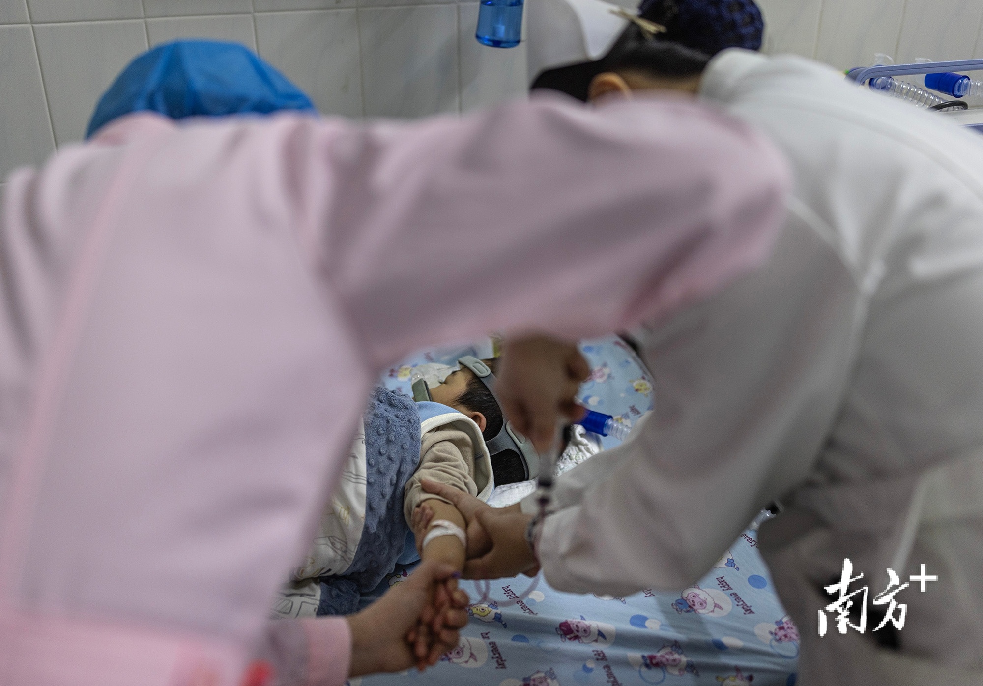 鞘注前,护士们给小“米粒”进行抽血。