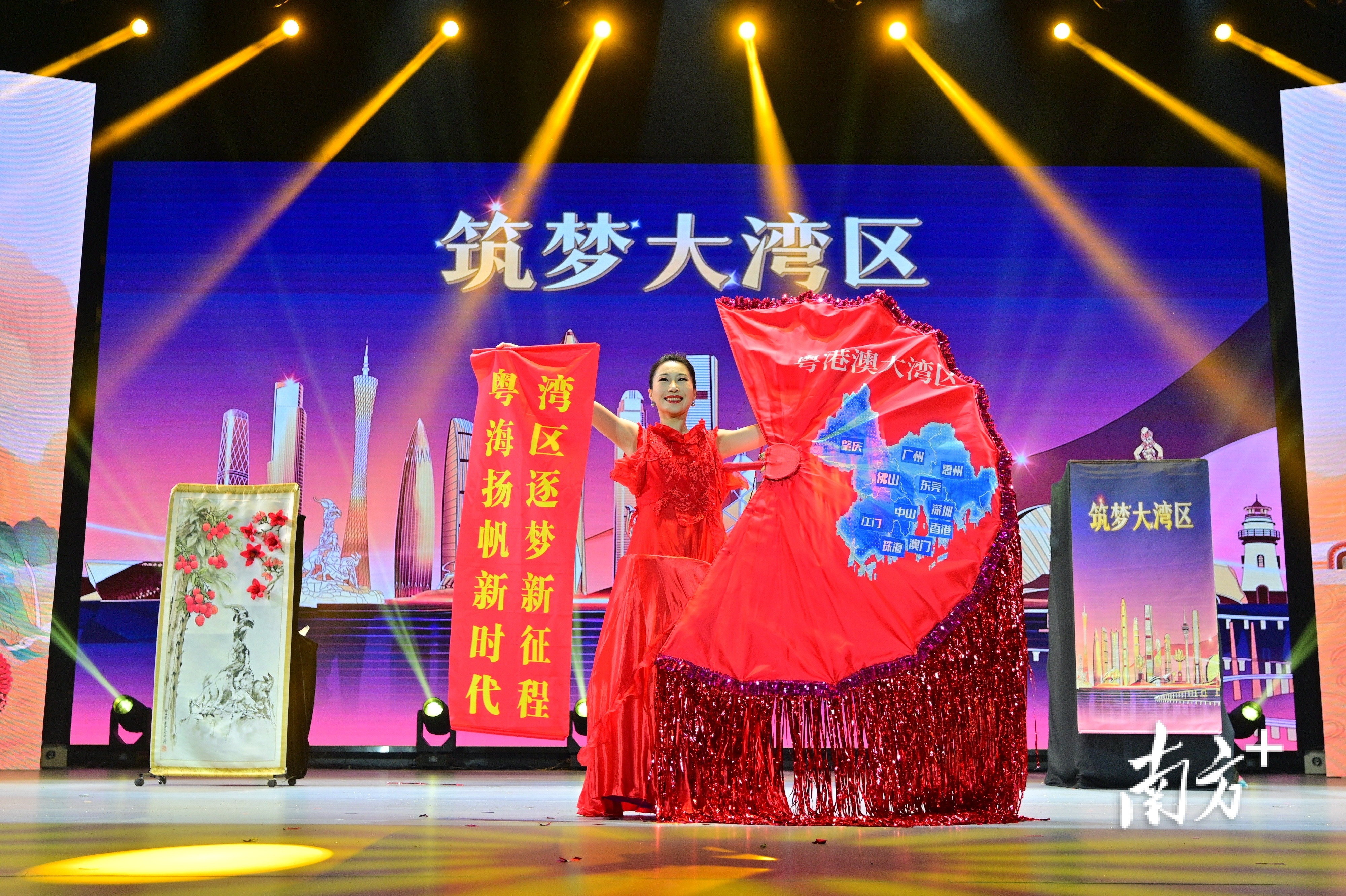 《青狮·启元》以文化自信塑造可信、可爱、可敬的中国形象,为新时代精神文明建设注入国际化视野与蓬勃活力;国内首部展现华人女性劳工史的粤剧作品《红头巾》也在当晚登上舞台,彰显非遗“以文化人、成风化俗”的社会价值;原创情景魔术《偶遇非遗》则以岭南文化为根基,展现了非遗在“双创”实践中的跨界融合魅力;舞蹈《绮梦香云纱》《广绣风华》更是汇聚老中青三代演员,突破年龄圈层,彰显“全民参与、全民共享”的文明实践理念;压轴节目《二十四节令鼓》以群鼓的表演形式,生动展现了向上向善的时代精神,以及中华优秀传统文化在海外传播中“创造性转化、创新性发展”的独特风采,将演出推向高潮。