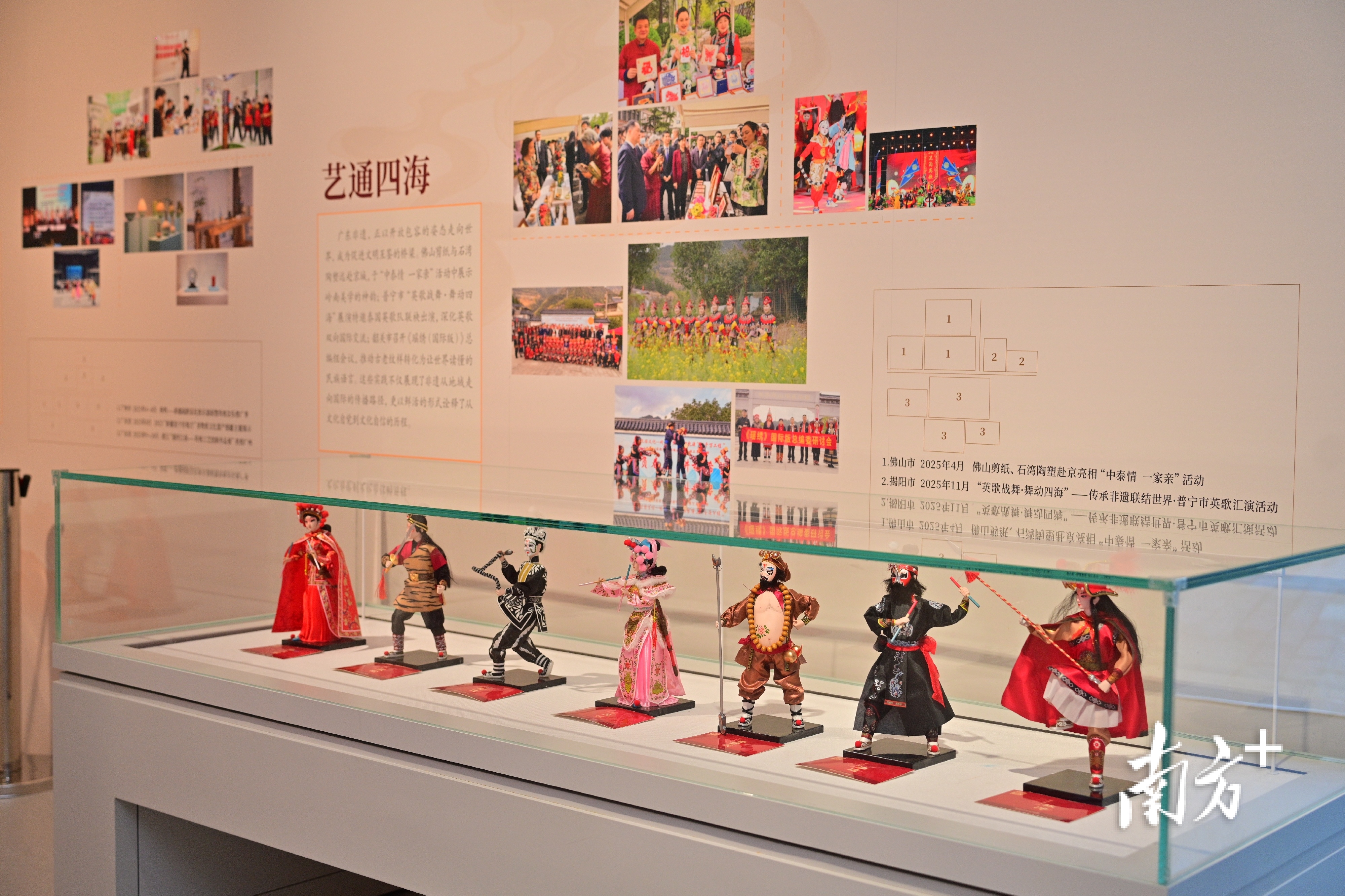 “岭南文脉 粤韵传承”——广东省非物质文化遗产“双创”文明实践成果展以“双创”文明实践为主线串联三大篇章,涵盖全省21个地市的近百个案例,为观众呈现广东非遗在新时代的创新实践路径,及其在以文化人、以文育人的精神文明建设中发挥的重要作用。展览期间,更有石湾陶塑技艺、广州榄雕、瑶族银饰制作技艺、广彩瓷烧制技艺、潮州工夫茶艺、广东剪纸等项目传承人来到现场开展互动体验。