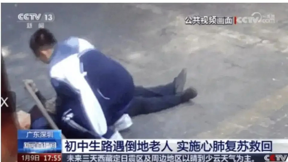 2024年12月31日下午,深圳市宝安区顺丰路街头,一位老人突然昏倒,口吐白沫、意识模糊。正值上学途中的张宇恒发现后,毫不犹豫上前施救。他迅速检查老人体征,果断实施心肺复苏,一边精准进行胸外按压,一边请路人拨打120,并细心清理老人口中异物。整个过程沉着冷静,动作规范,直至老人恢复意识、顺利送医。