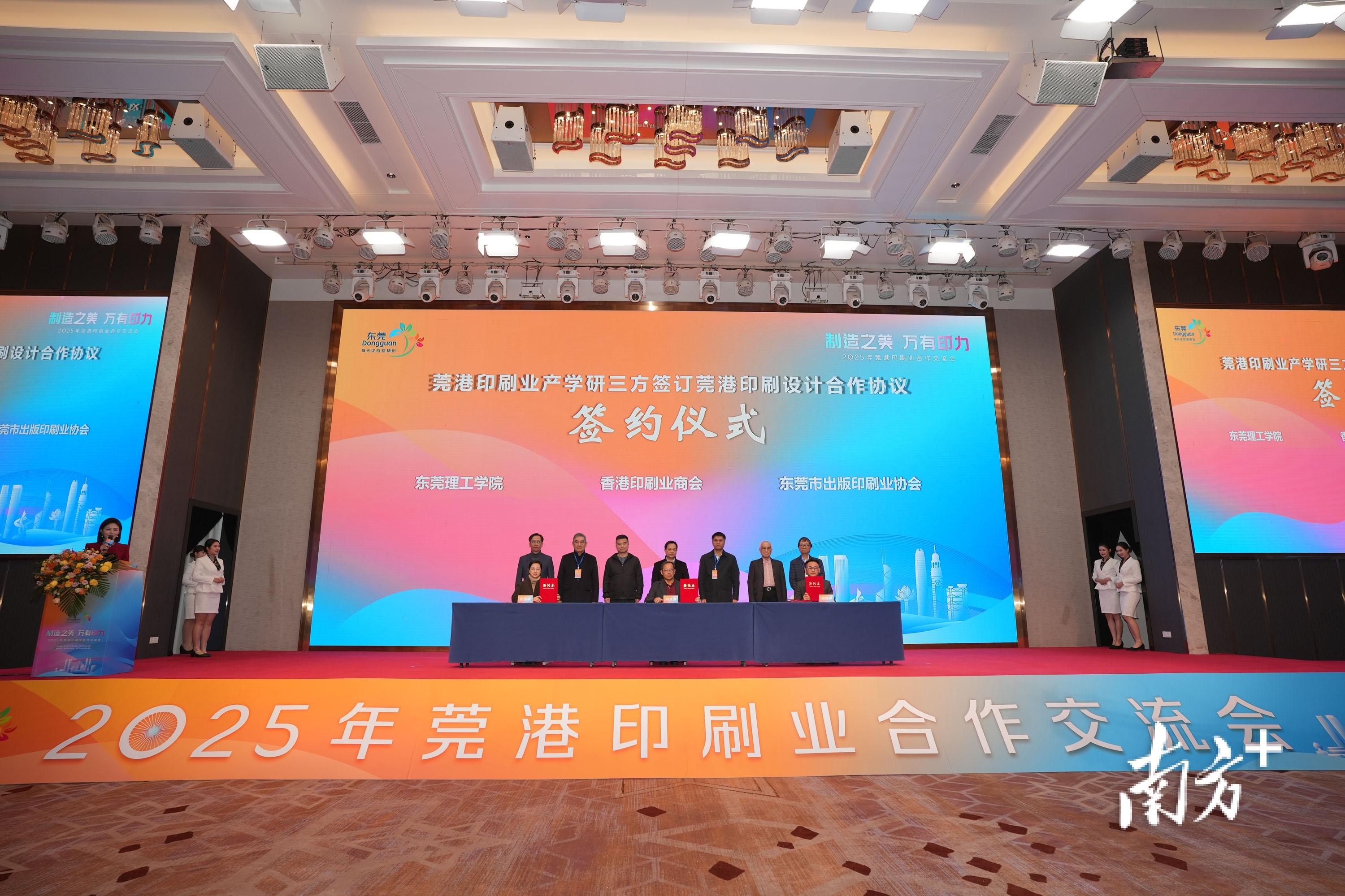 为夯实人才支撑,香港印刷业商会、东莞市出版印刷业协会与东莞理工学院在现场签订了产学研合作协议。三方将各自发挥优势,培育既懂前沿技术又懂美学设计的复合型人才。