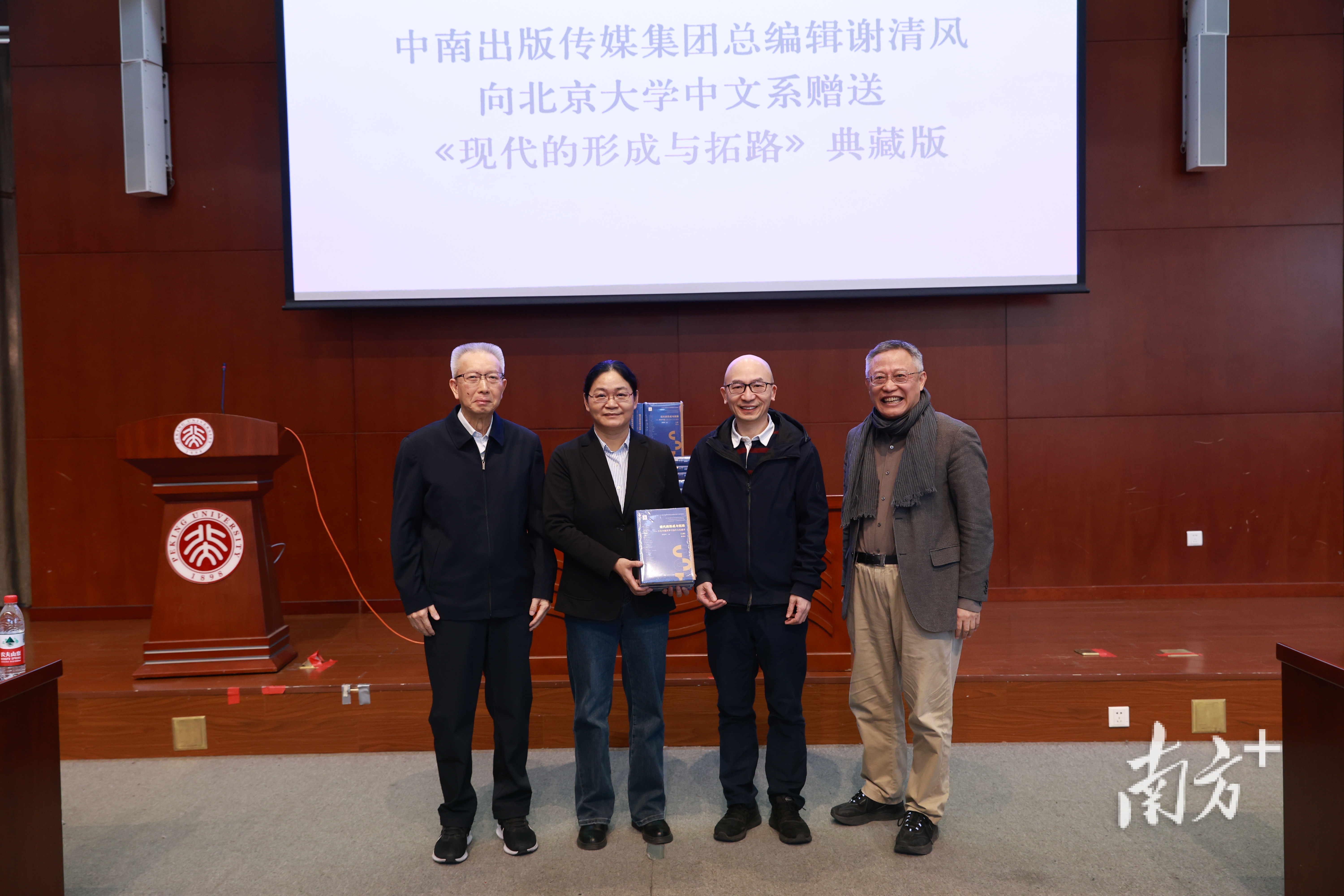 中南出版传媒集团总编辑谢清风代表出版方向北京大学中文系赠送典藏版。他表示,本书入选多个国家级出版基金项目,实现了跨学科融合与理论创新。